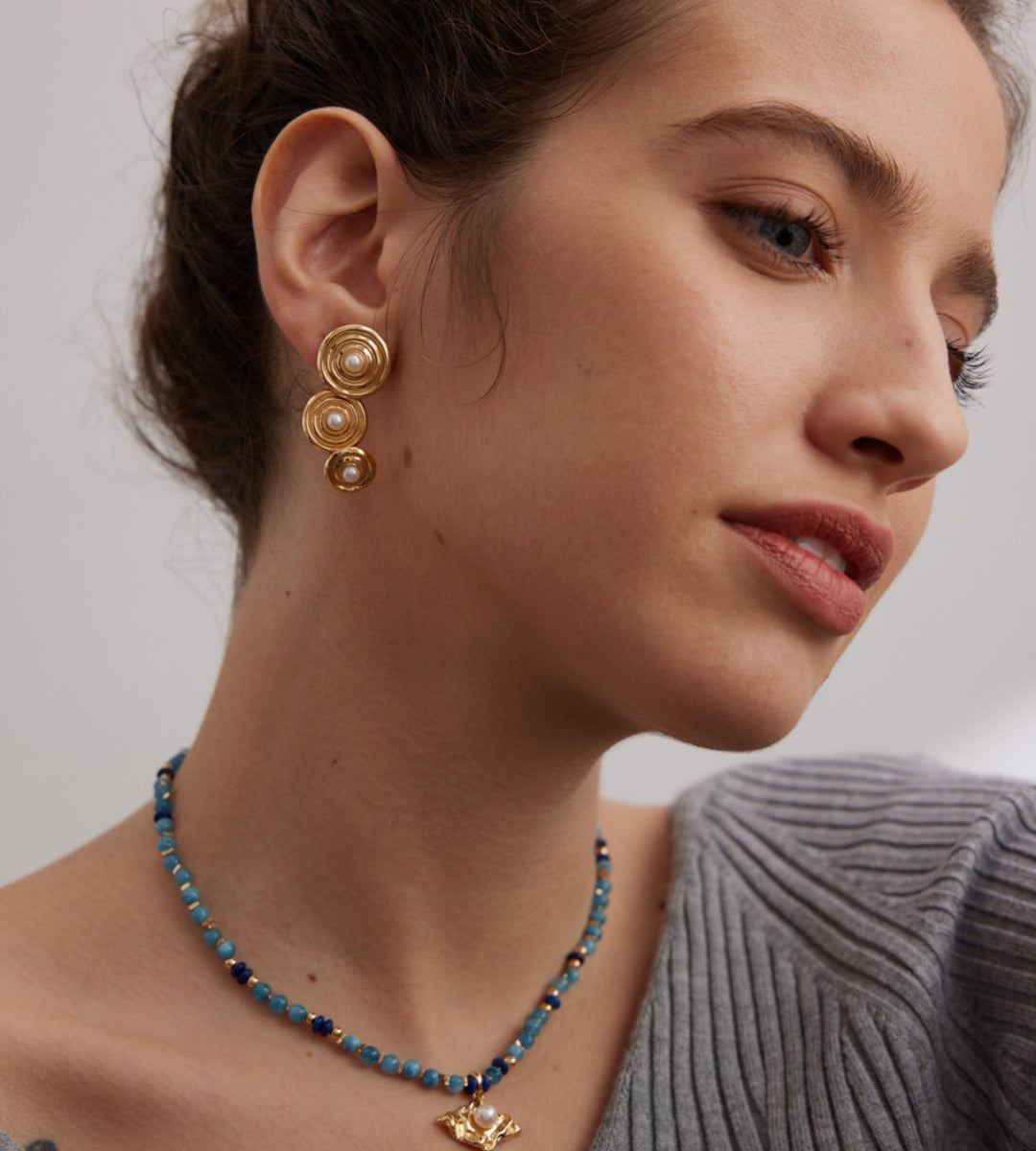 Gentle Wave | Natural Blue Sandstone & Pearl Necklace D0530