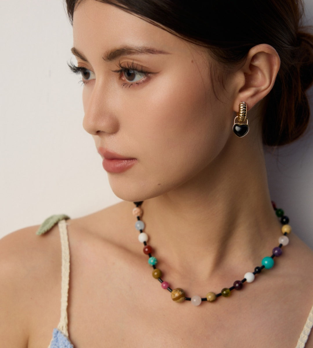 Gentlewaveco Iridescent Black Onyx Beaded Statement Necklace NMX1014