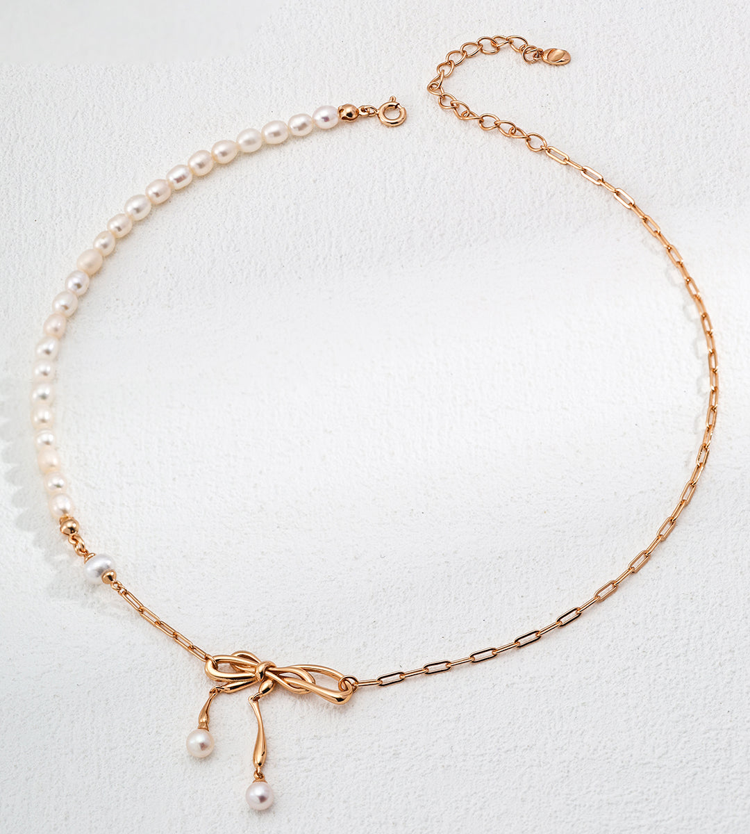 GentleWaveCo Adjustable Pearl Choker & Lariat Necklace - Pure Silver in White Gold & Vintage Gold D0465