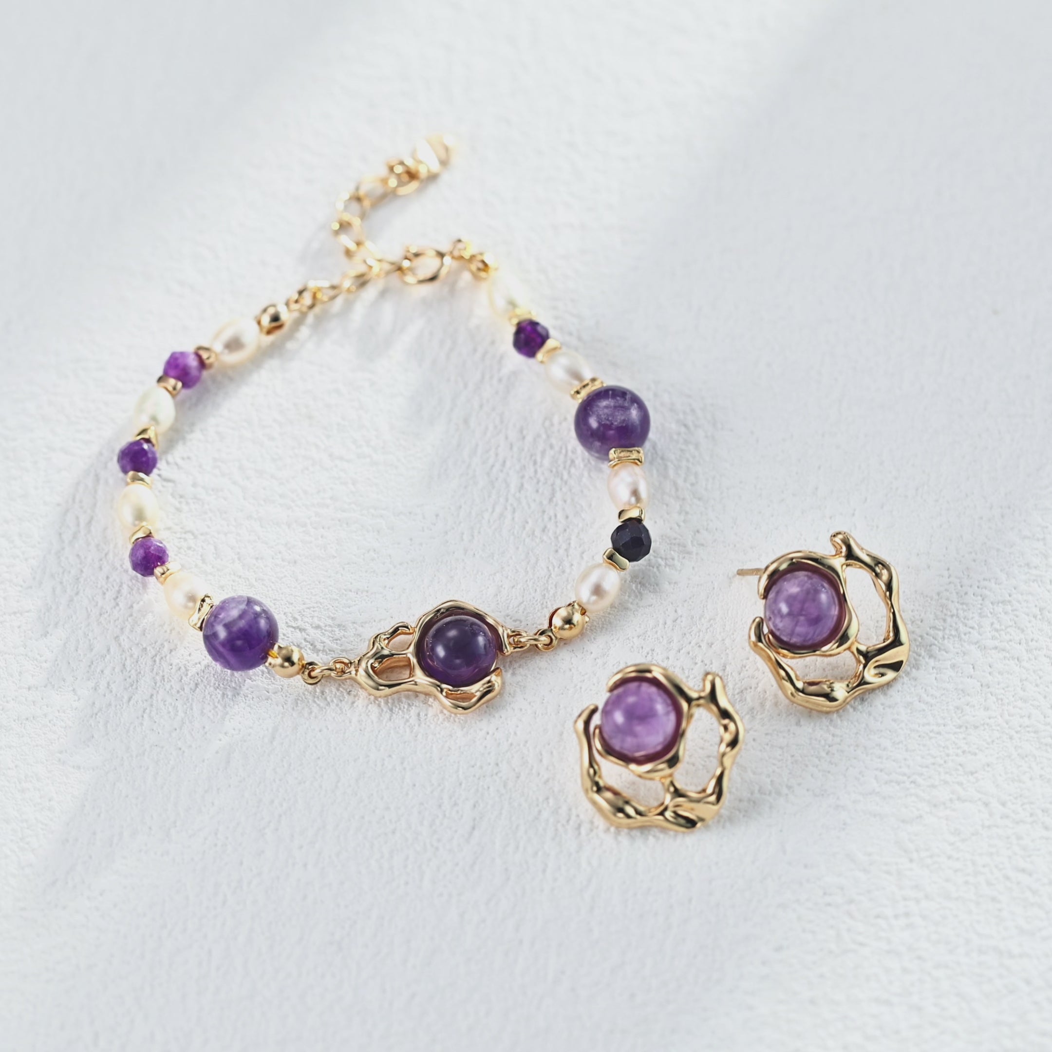 Celestial Aura Amethyst Bracelet Minimalist Charm Bracelet SL0241-2