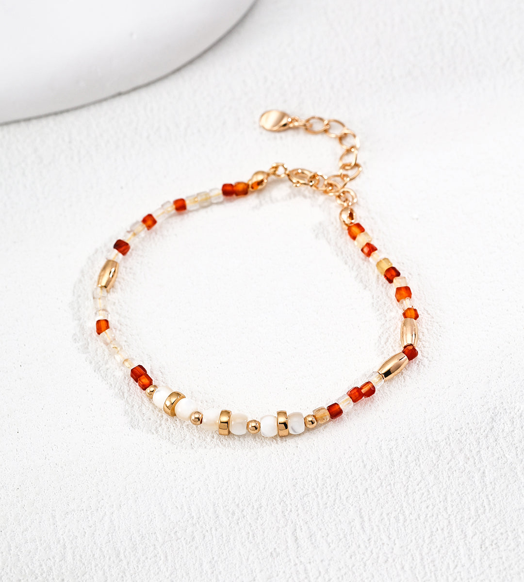 Red Agate and Mother of Pearl Bracelet Balance Charm Bracelet SL0194-2