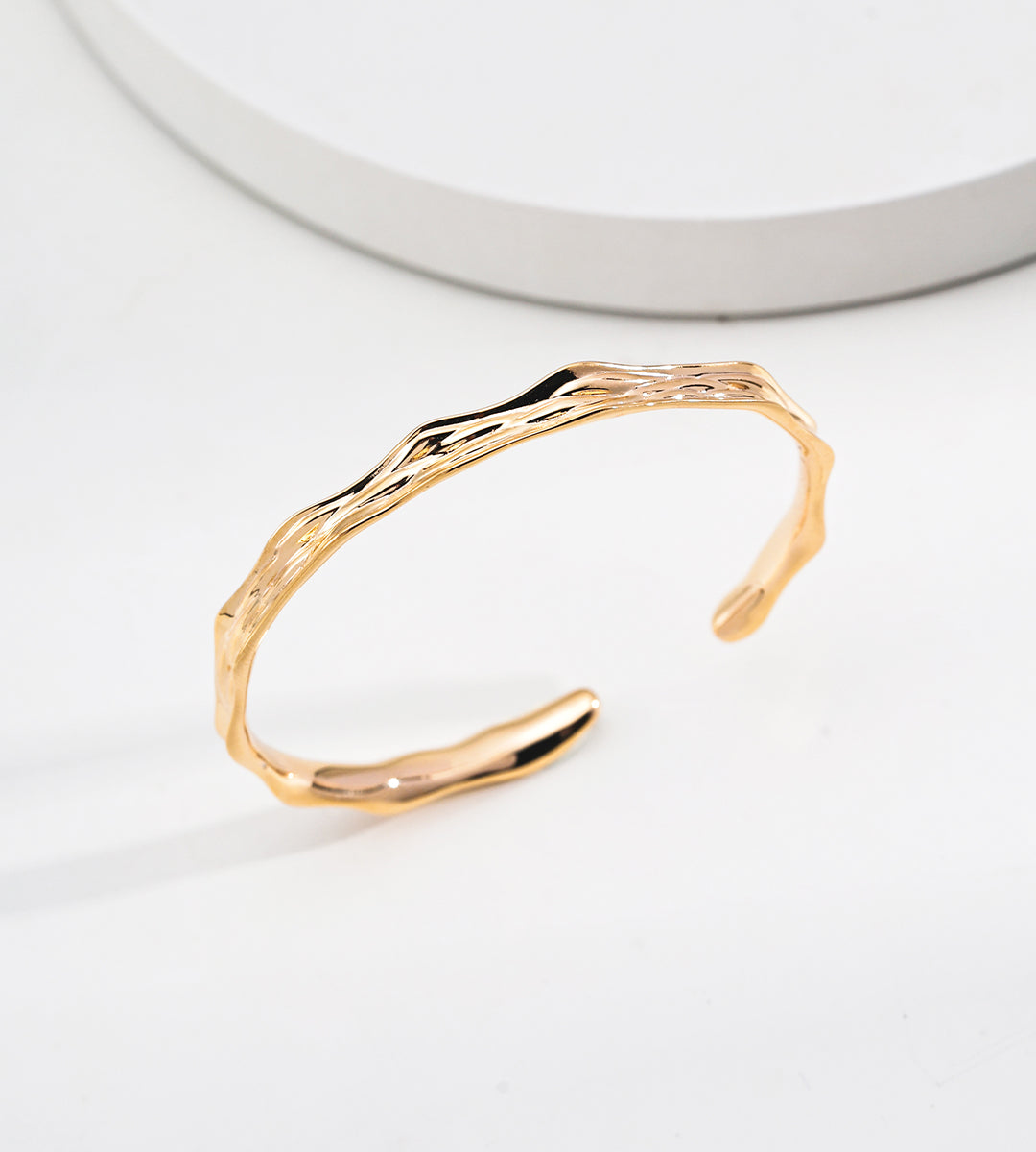Wave Wave Texture Sterling Silver Bangle Bracelet S0054