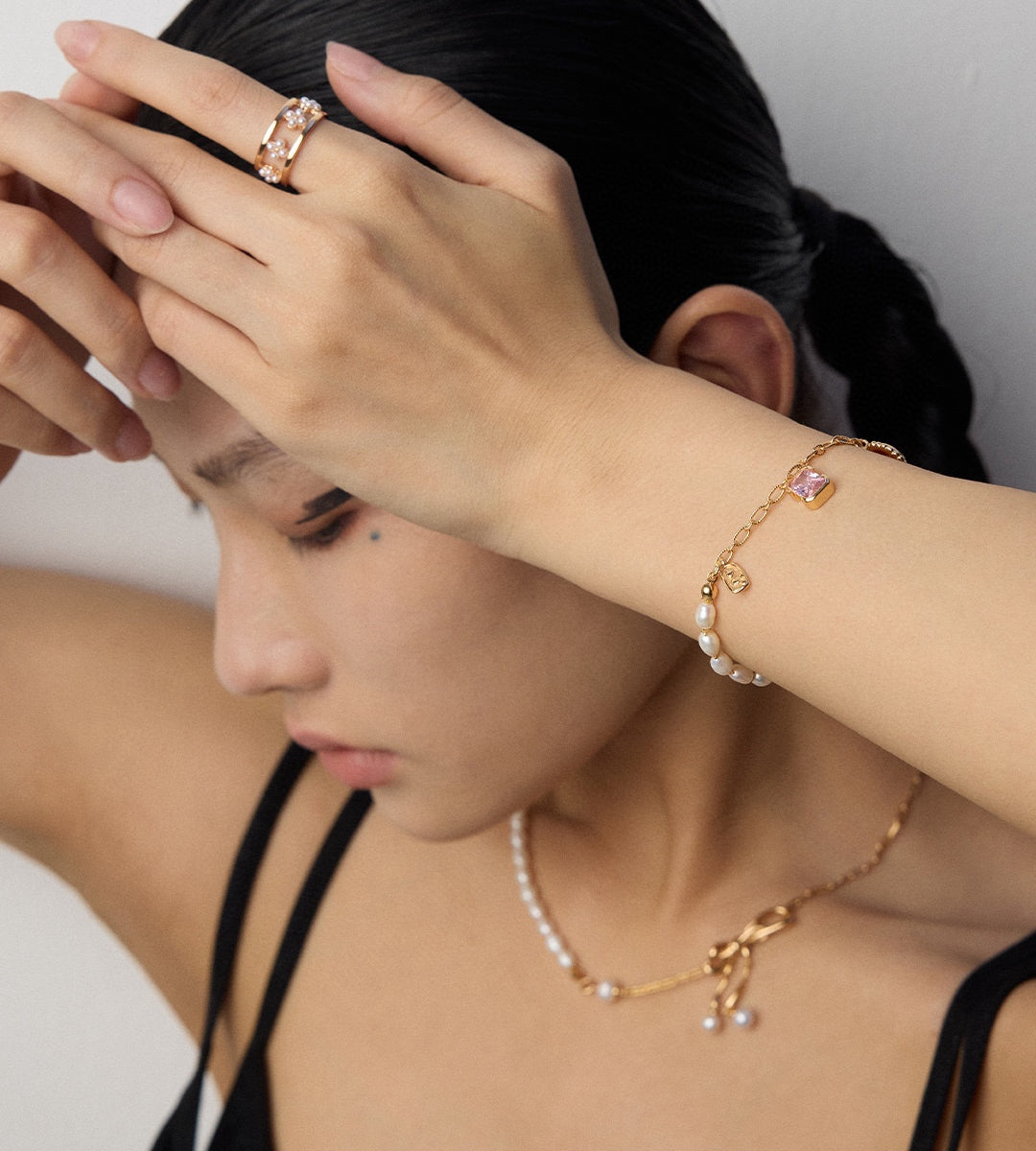 Gentlewaveco Sterling Silver Pearl Zircon Delicate Bracelet SL0129