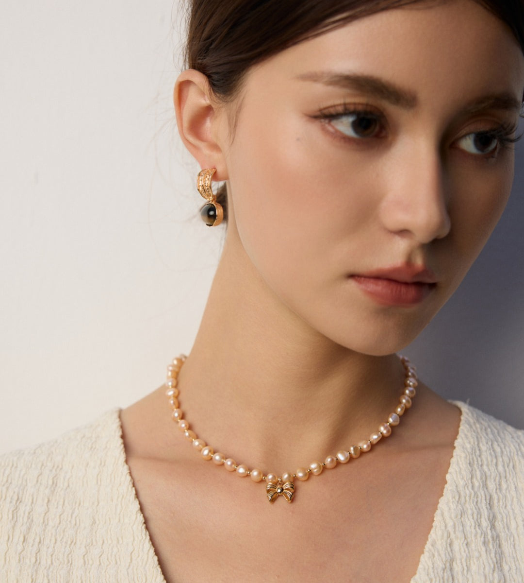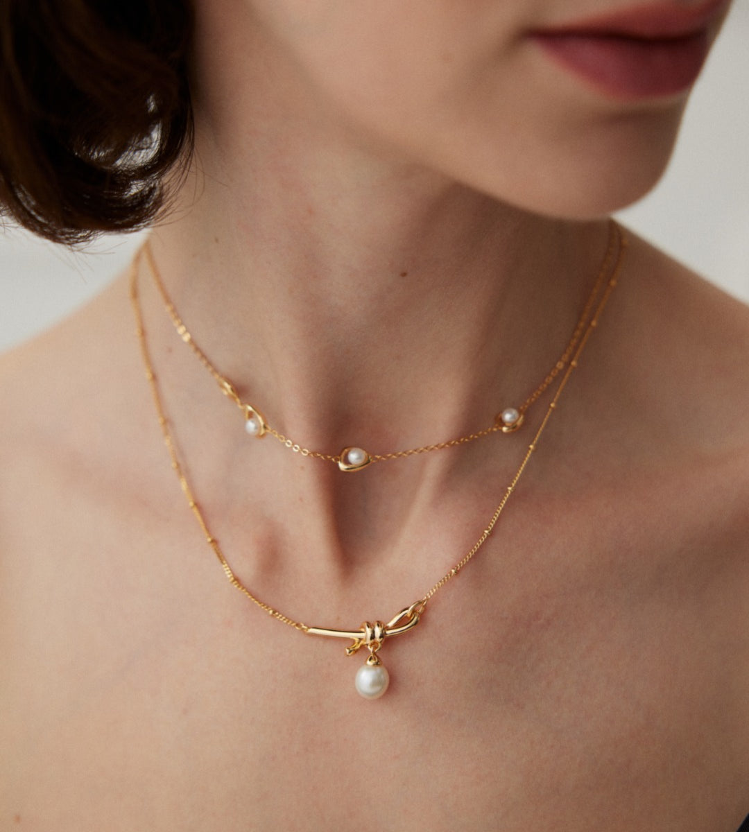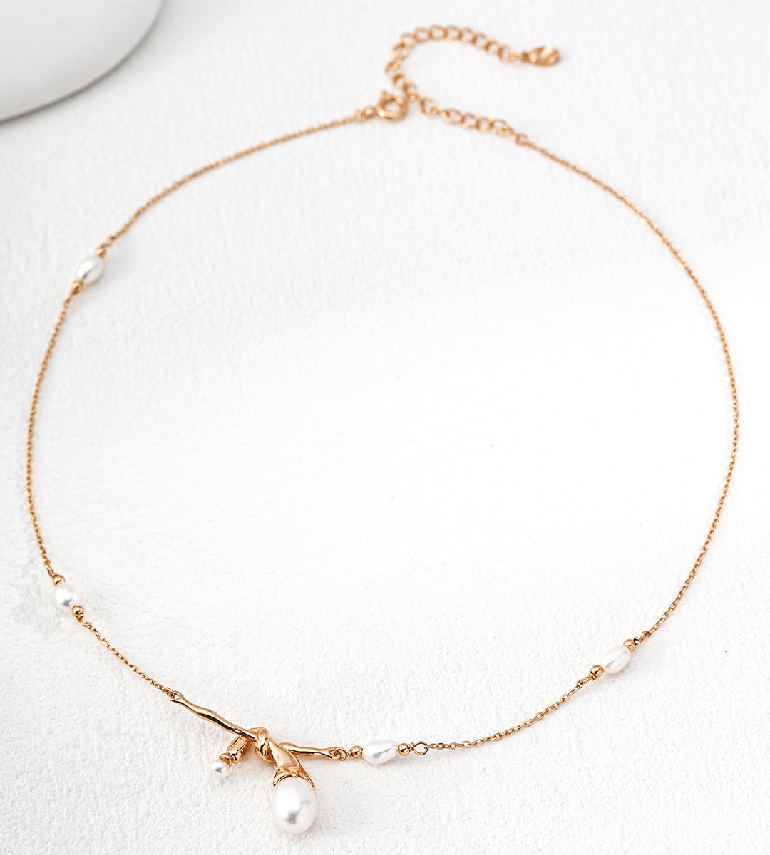 Natural Freshwater Pearl Necklace with Silver Knot Vintage Style Jewelry GiftD0661-2