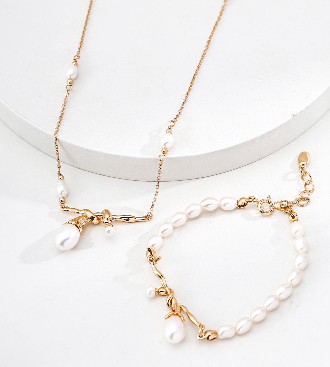 Gentlewaveco Natural Pearl Architectural Pendant Necklace D0596