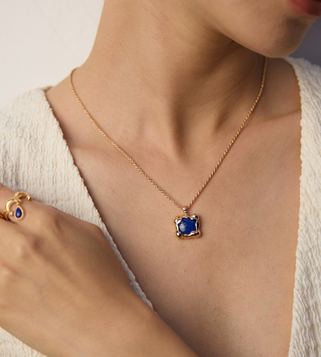 Gentlewaveco Minimalist Lapis Lazuli Wish Pot Pendant Necklace D0556-2
