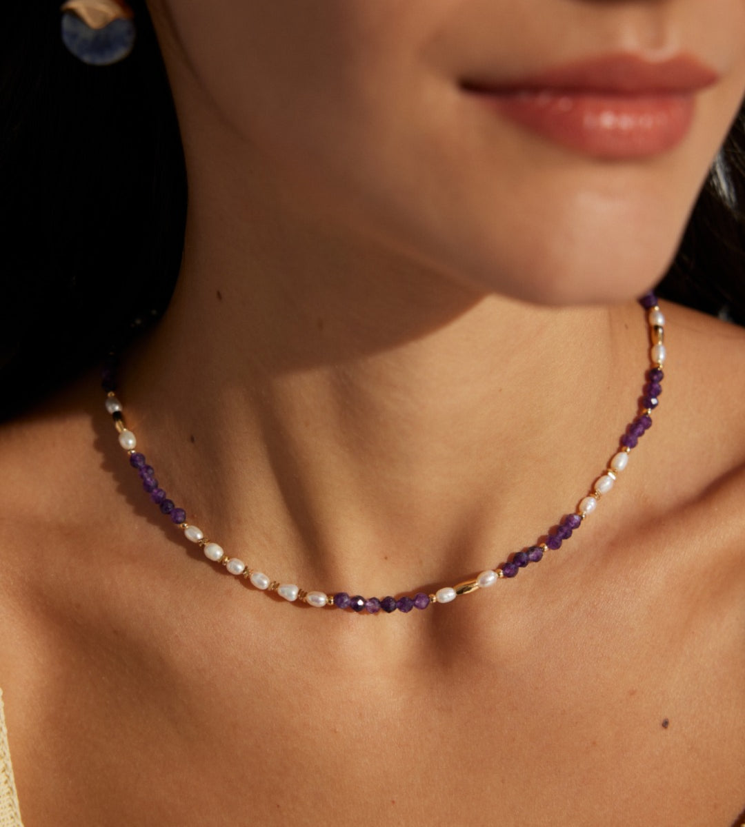 Gentlewaveco Vintage Natural Pearl Amethyst Elegance Necklace D0564-2