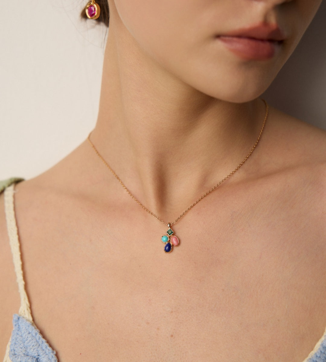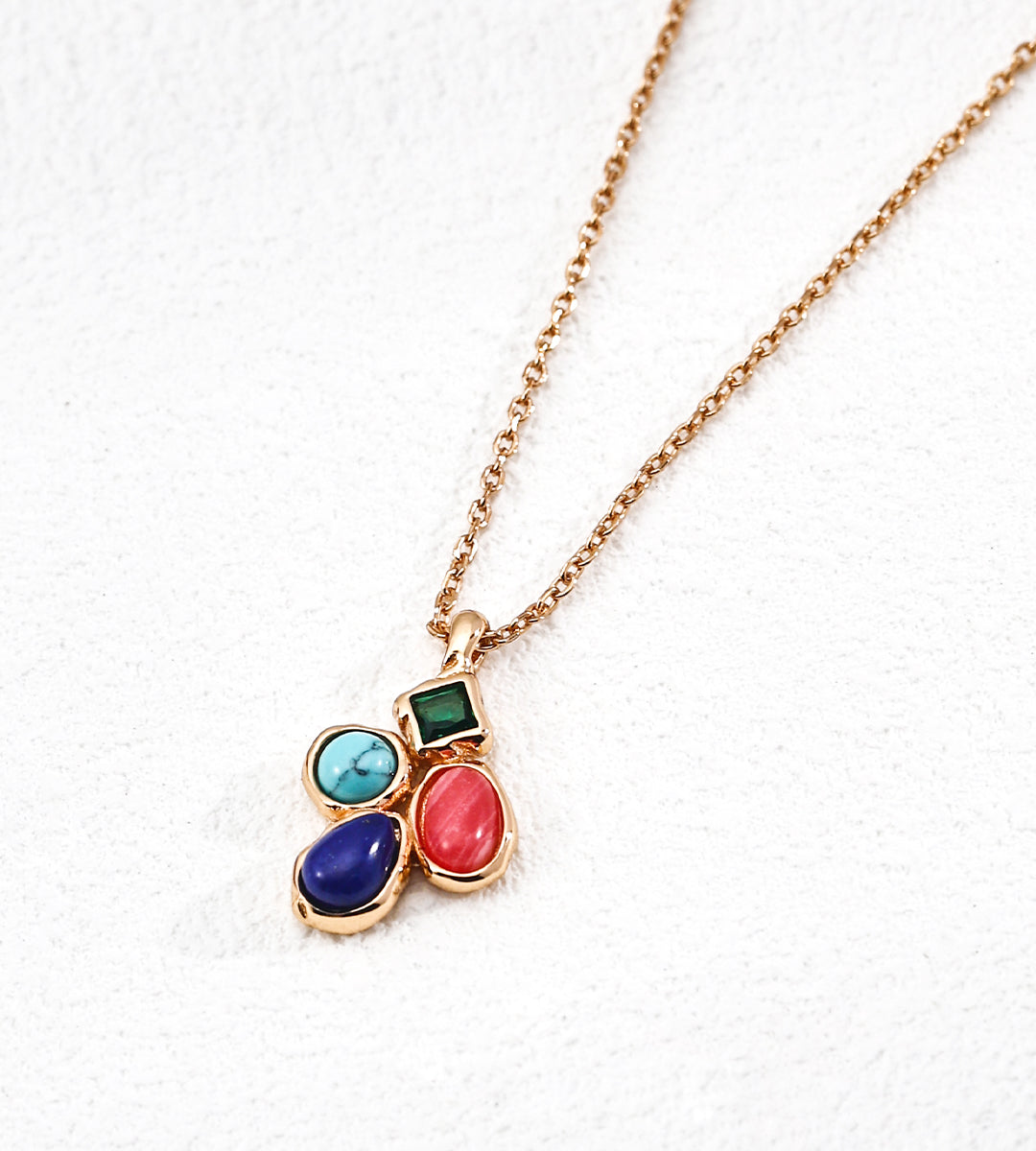 Gentlewaveco Vintage Lapis Lazuli Turquoise Rhodochrosite Zircon Pendant Necklace D0633-2