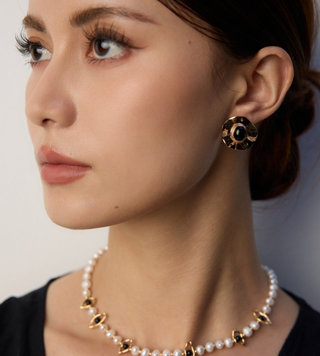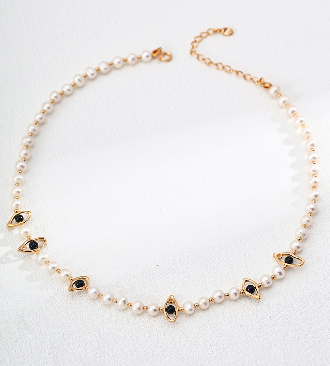 Gentlewaveco Natural Pearl Black Onyx Celestial Pendant Necklace D0588-2
