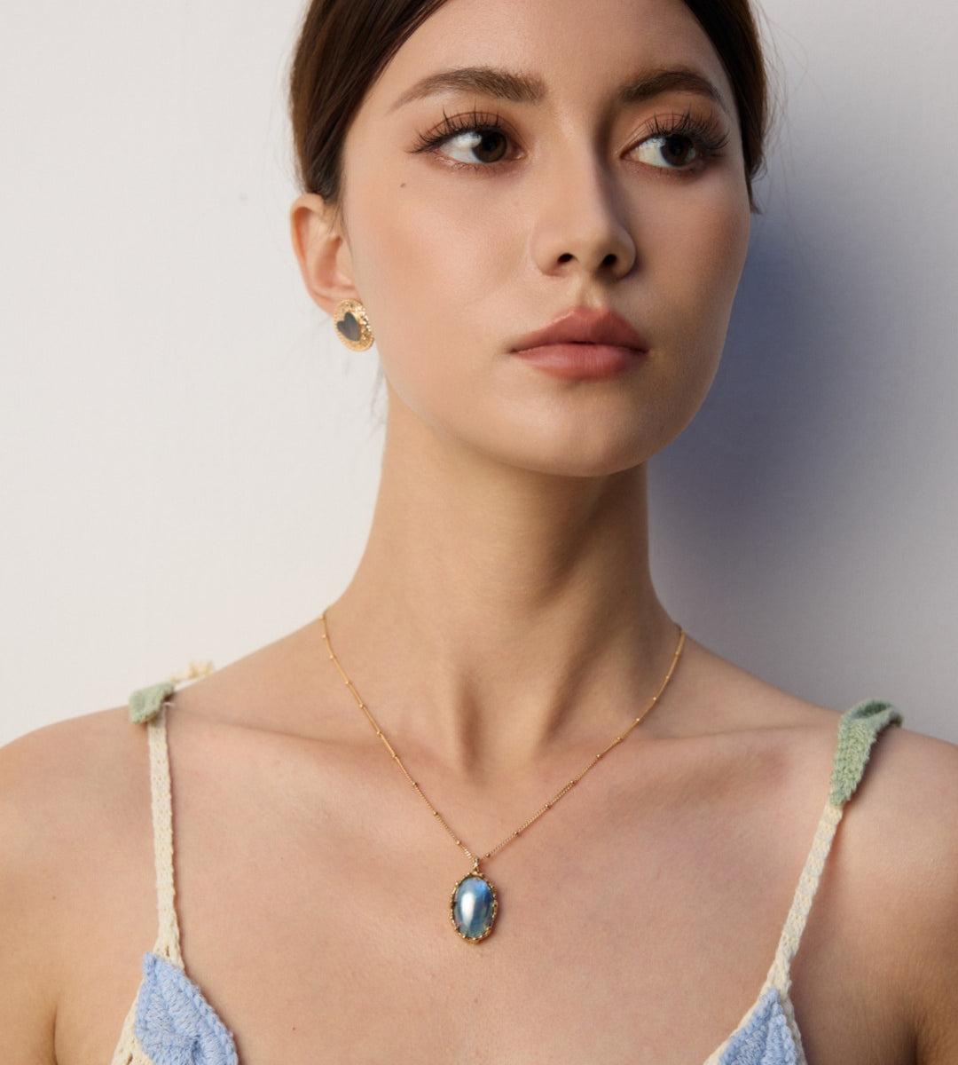 Gentlewaveco Agate Oval Pendant Minimalist Necklace D0434