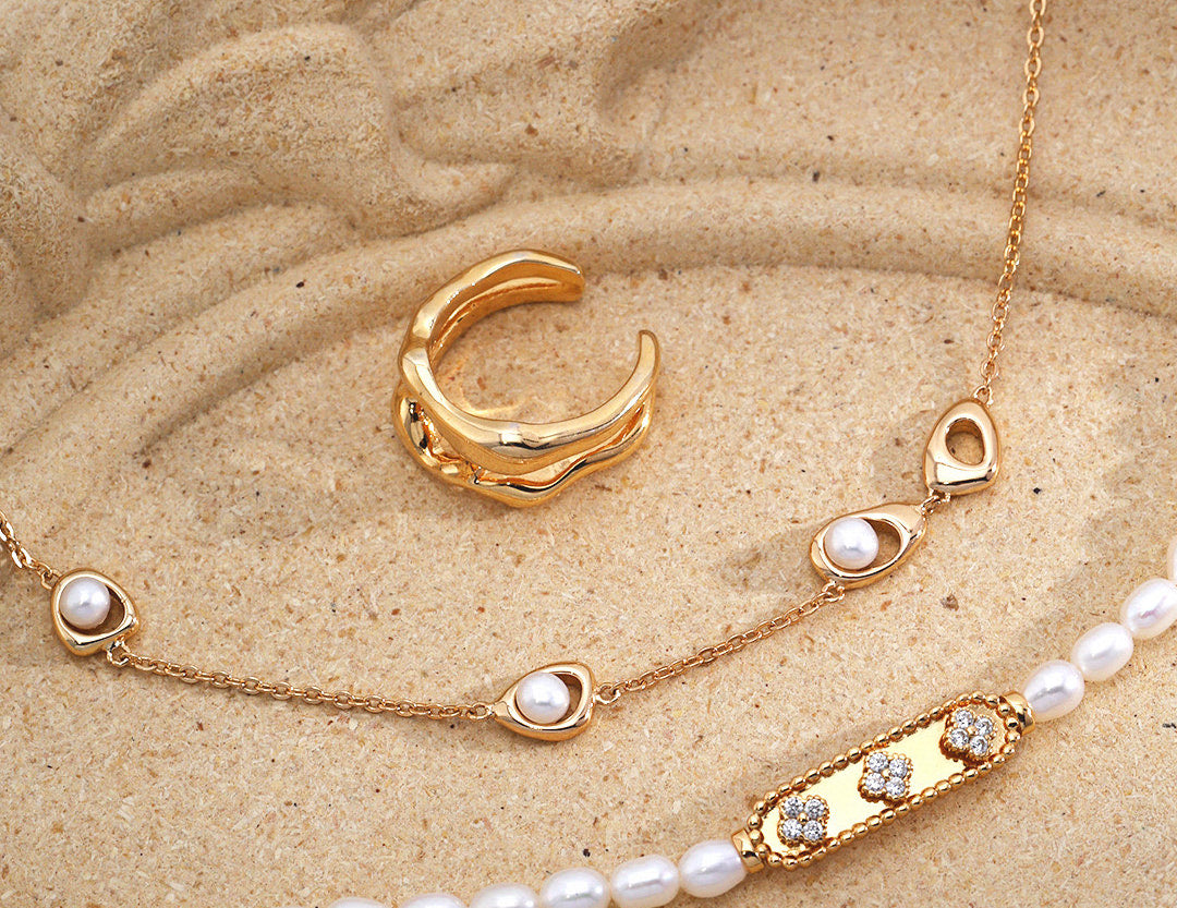 Solo Pearl: Centered by a single, high-luster pearl.
