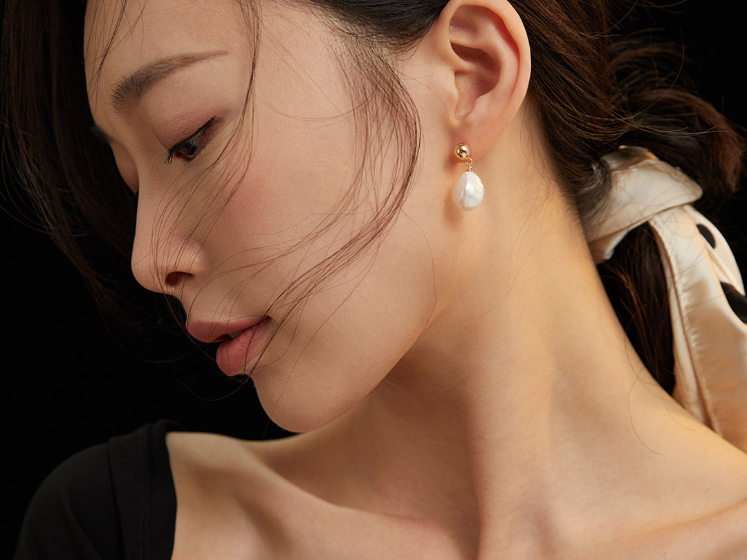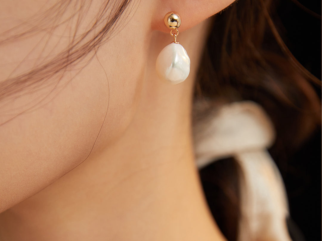 Baroque Pearl Gold Earrings E0691