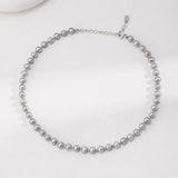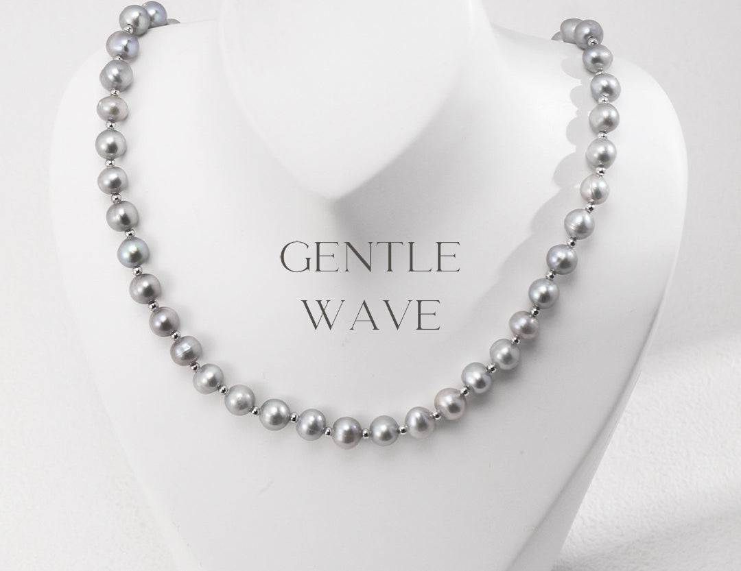 Gentle Wave Classic Pearl Necklace – Timeless Elegance in Silver D0480-1