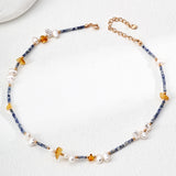 Gentlewaveco Fashion Natural Pearl Blue Spot Stone Beeswax Pendant Necklace D0626-2