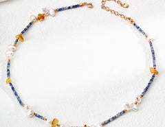Material: S925 Sterling Silver / Natural Pearl / Blue Spot Stone / Beeswax