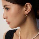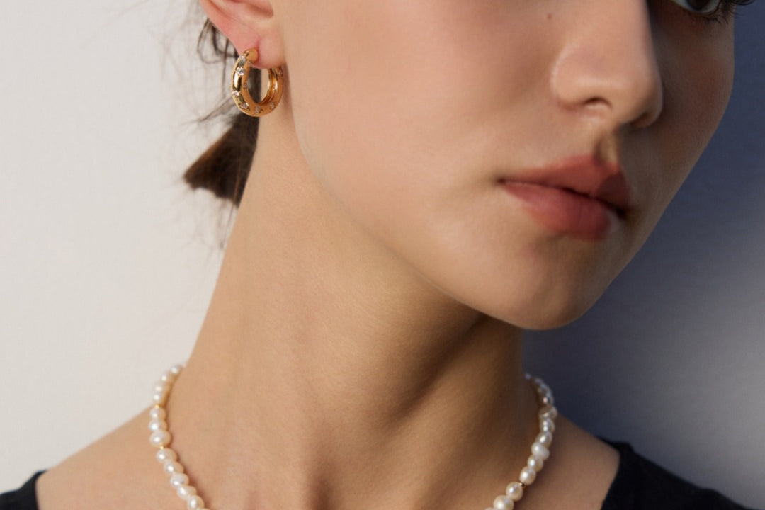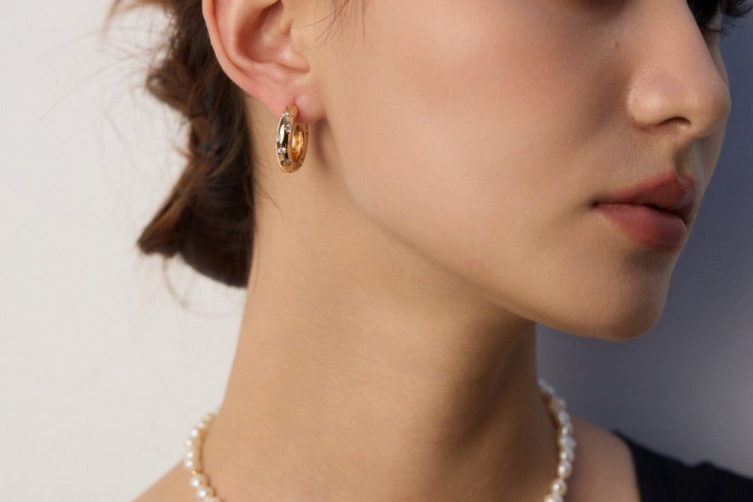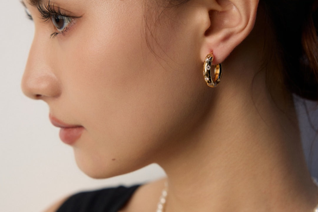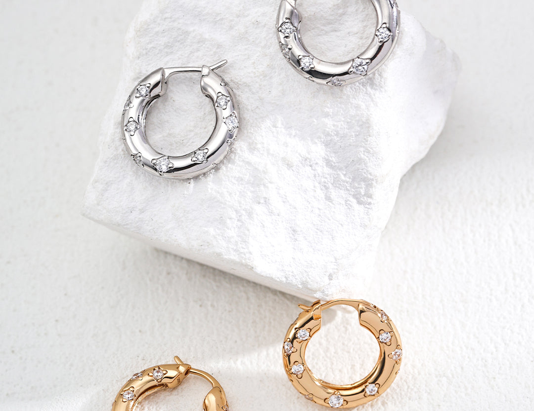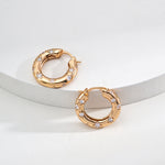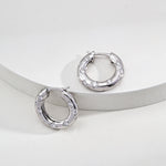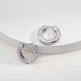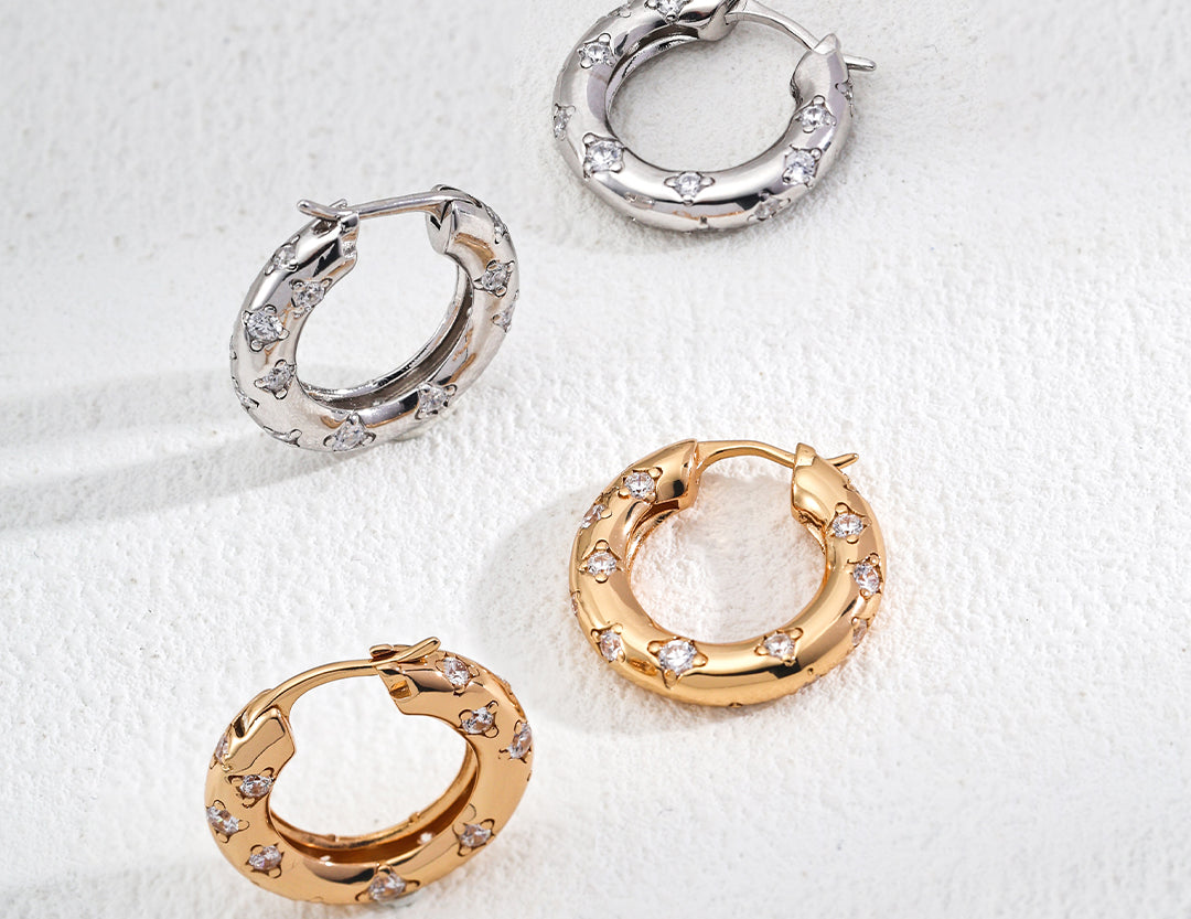 Contemporary elegance redefined. These architectural stud earrings feature precisely arranged zircon stones in a geometric pattern, creating a striking play of light and form that complements both professional and evening looks.