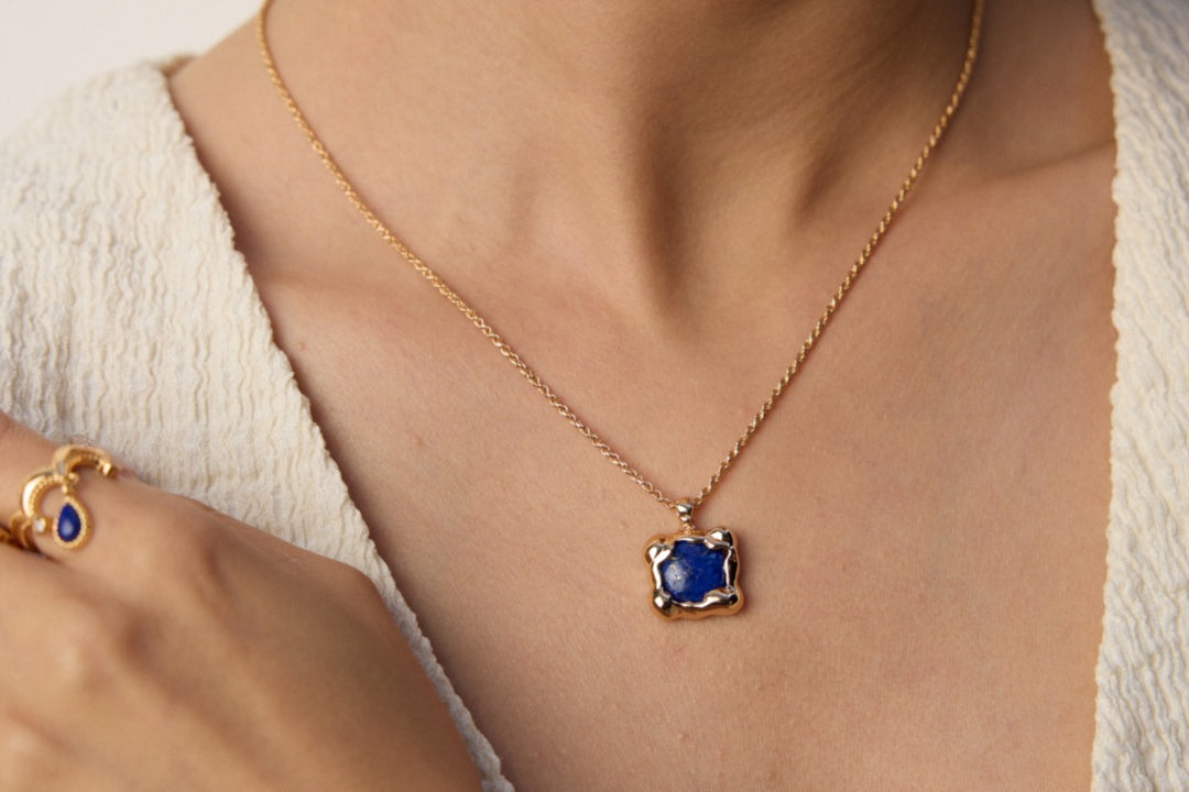Capture the Mystique of the Night Sky. Embrace the timeless allure of the GentleWaveCo Lapis Lazuli Pendant Necklace, a piece where minimalist design meets ancient mystery. This pendant features a deeply celestial blue lapis lazuli stone, hand-set within a uniquely crafted S925 sterling silver frame. The stone's specks of golden pyrite mimic a starry night, offering a wearable piece of the cosmos that is both grounding and inspiring.