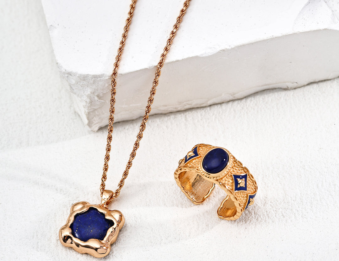 Genuine Lapis Lazuli: Sourced for its rich, celestial blue color and characteristic golden pyrite flecks, symbolizing wisdom and truth.