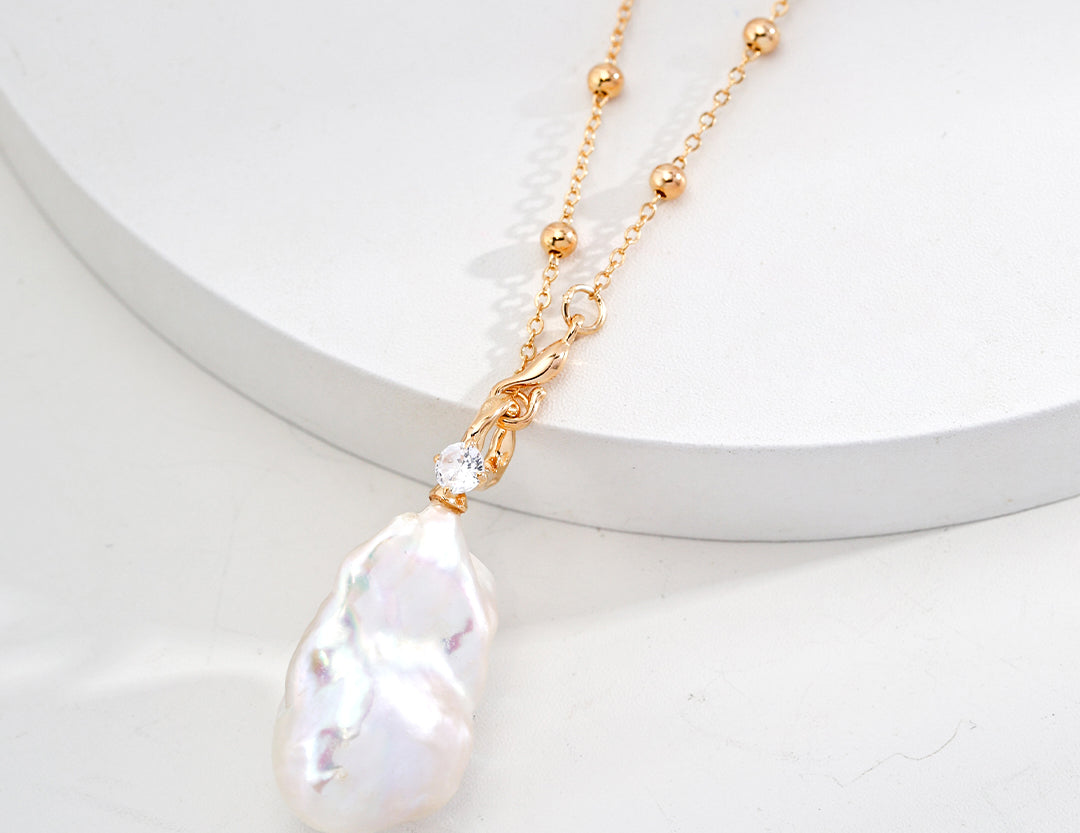 GentleWaveCo Natural Pearl & Zircon Necklace D0574-2
