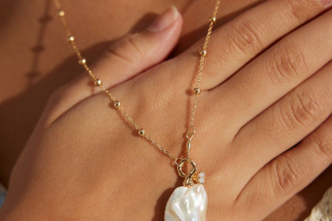 This GentleWaveCo necklace features a stunning natural pearl set in 925 silver, accented by sparkling zircon stones. The vintage gold finish adds timeless elegance, while the adjustable 55+6cm chain ensures the perfect fit.