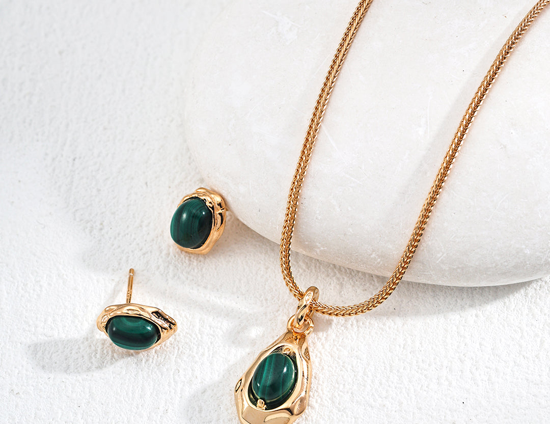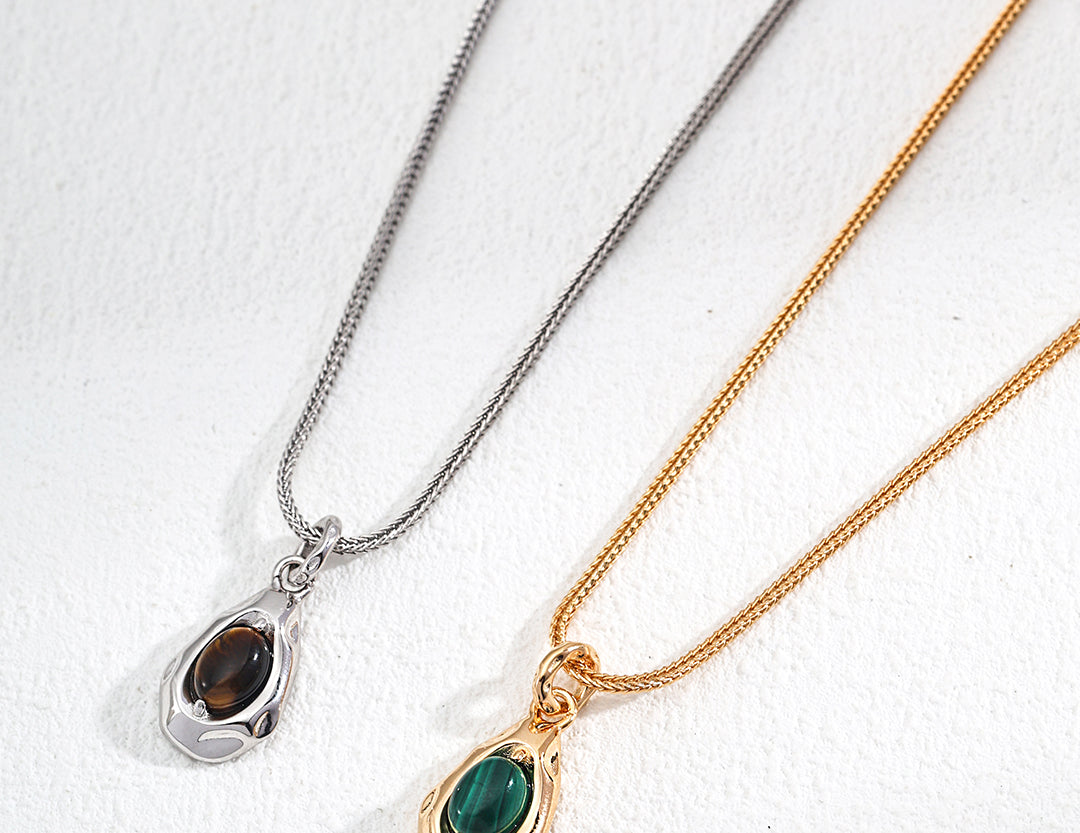 Urban serenity meets earthy elegance. This striking malachite pendant, accented with golden tiger eye, brings a refreshing touch of nature's vibrancy to your city style - making it the perfect statement piece for modern life.