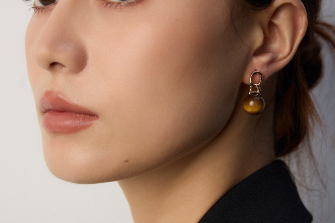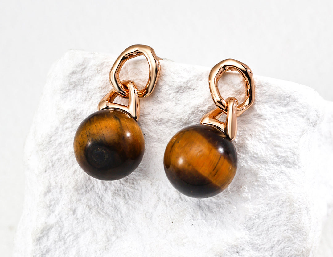 The minimalist sterling silver setting allows the natural stone to take center stage, creating a versatile accessory that effortlessly complements both bohemian and modern minimalist styles. With a total drop length of approximately 2.5cm and a Tiger's Eye stone measuring about 1.2cm, the design makes a subtle yet statement-making impact.