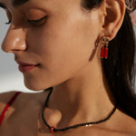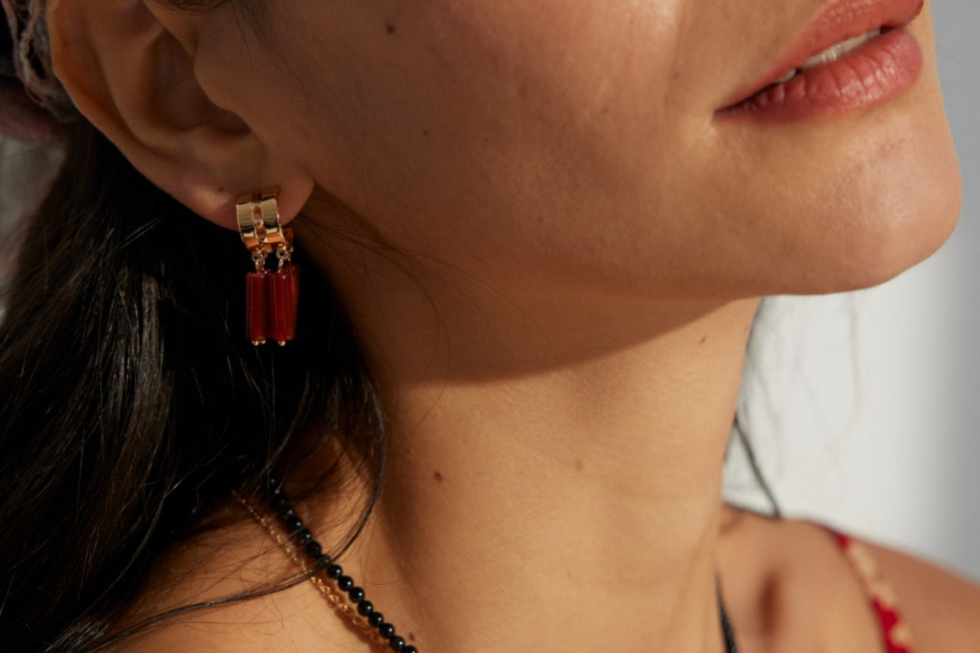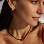 With a total length of approximately 3cm and a finely carved agate stone measuring about 1.4cm x 0.4cm, the design creates a striking yet graceful drop that elongates the neckline. It’s a statement piece that speaks volumes in a whisper.