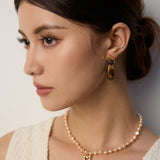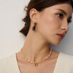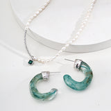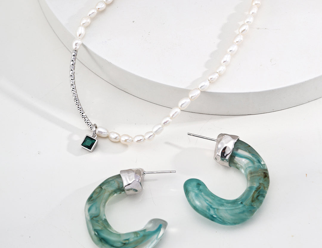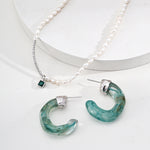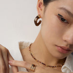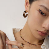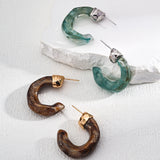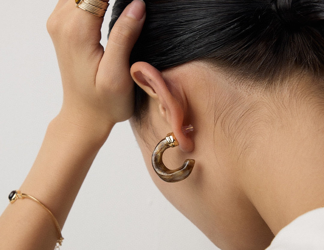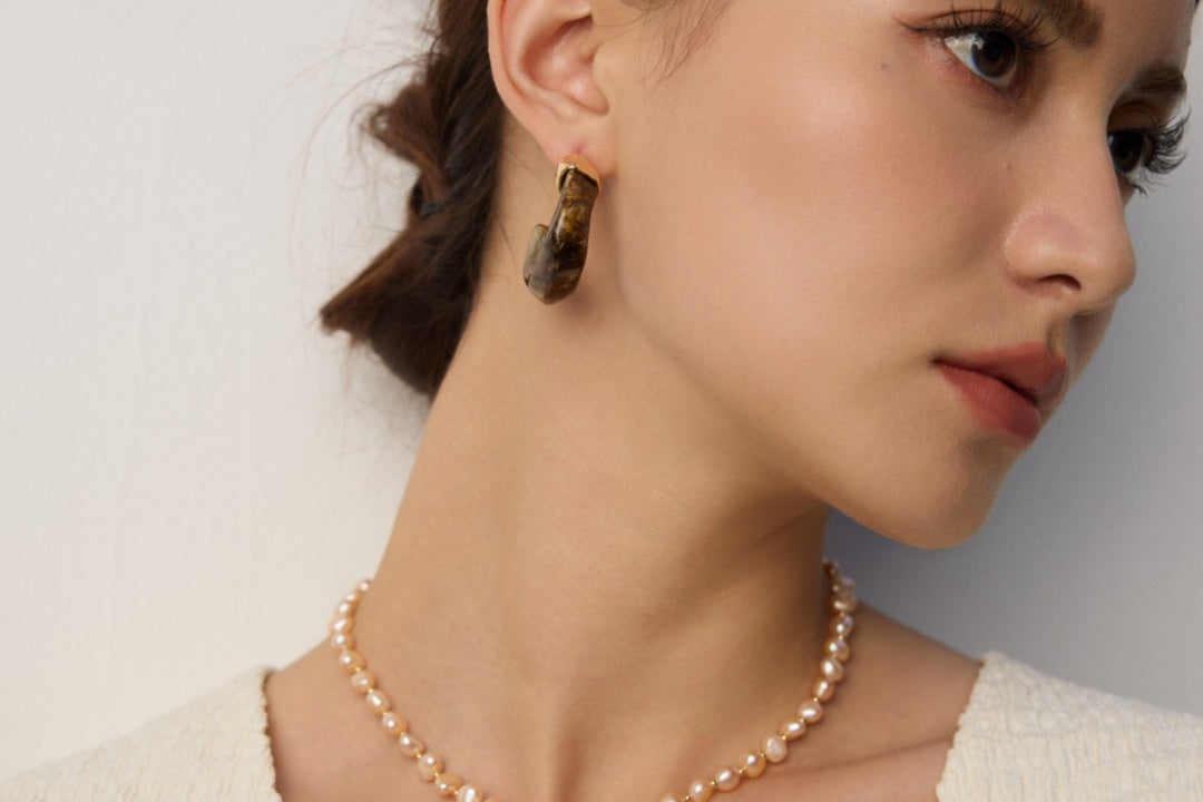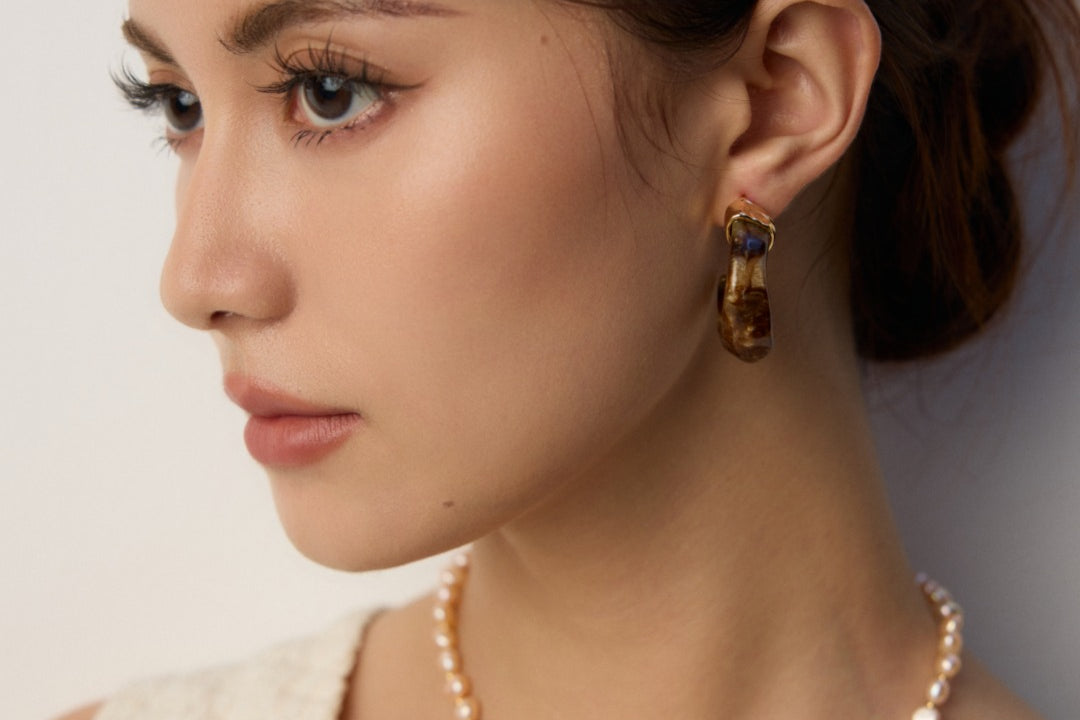 The earrings masterfully blend poetic natural imagery with clean architectural lines. The swirling patterns of imitation moss agate recall ancient landscape paintings, while the wood-like texture of simulated sea willow adds depth and warmth. This sophisticated combination creates a piece that feels both timeless and distinctly modern.