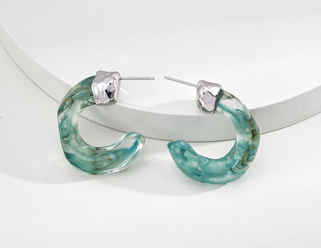 Discover the GentleWaveCo New Chinese Style Imitation Earrings, a wearable art piece that captures the essence of flowing rivers and natural wood grain in a contemporary silhouette. These earrings reimagine classic Chinese natural aesthetics through a modern lens, featuring a gracefully curved 3cm frame that integrates simulated moss agate and sea willow patterns in perfect harmony with the organic shape.