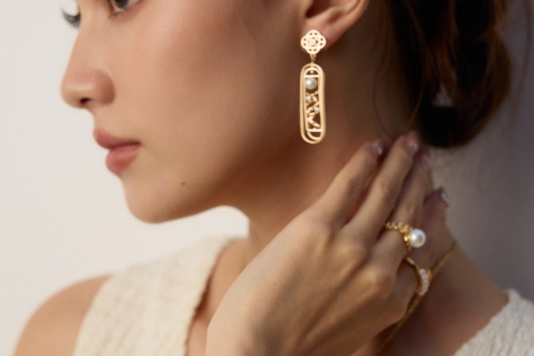 Ethereal drops of light. A luminous natural pearl meets sparkling zircon in this gracefully cascading design, blending organic beauty with celestial brilliance for a truly captivating presence.