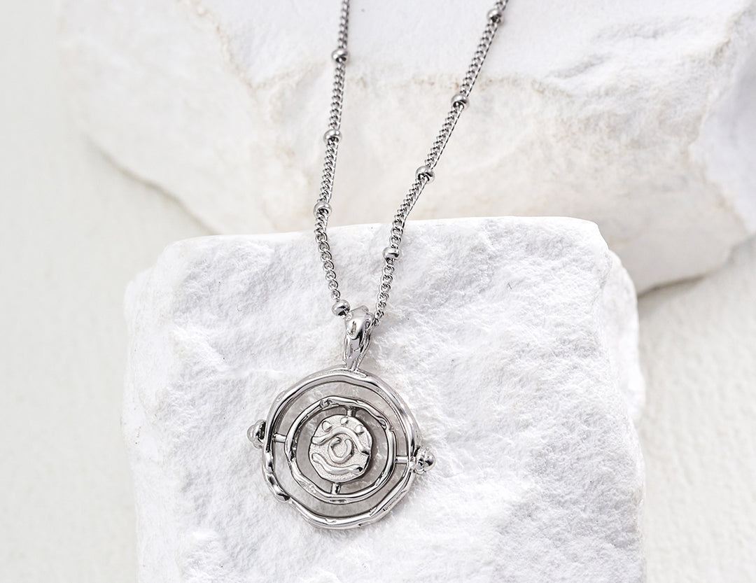 Timeless vintage design meets modern versatility. This elegant sterling silver necklace features a delicate 2cm pendant, perfect for layering or wearing alone as a subtle statement of refined style.