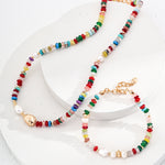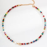 GentleWaveCo Silver Pearl & Color Stone Necklace D0542