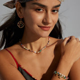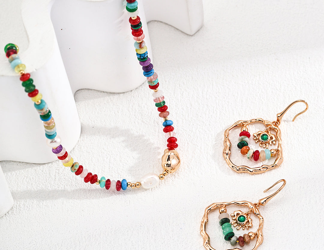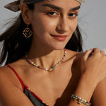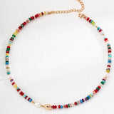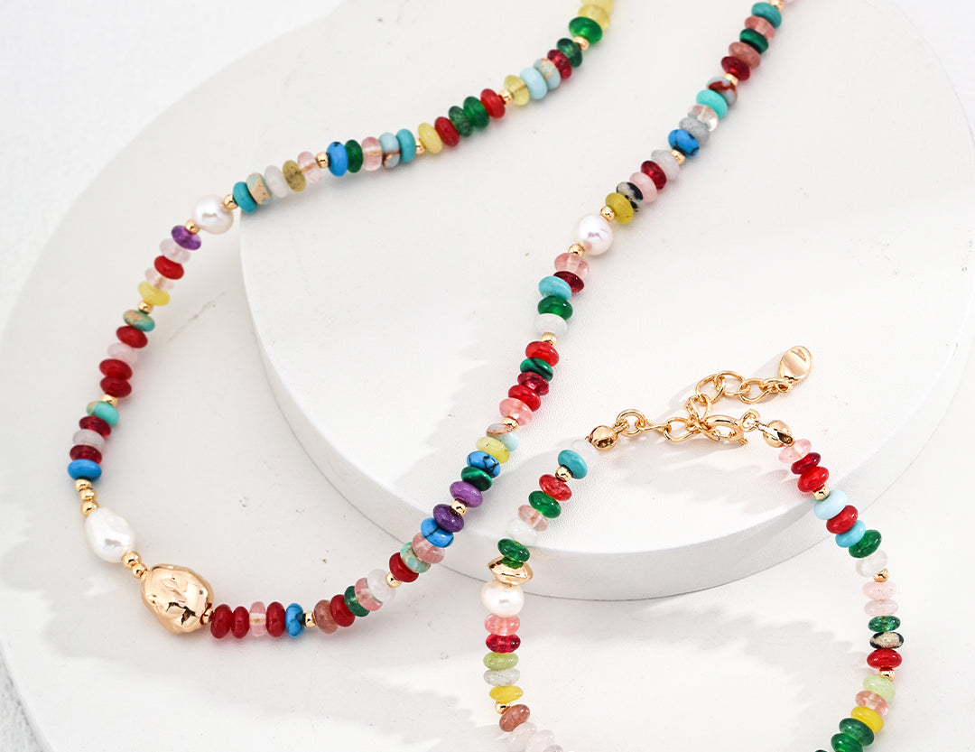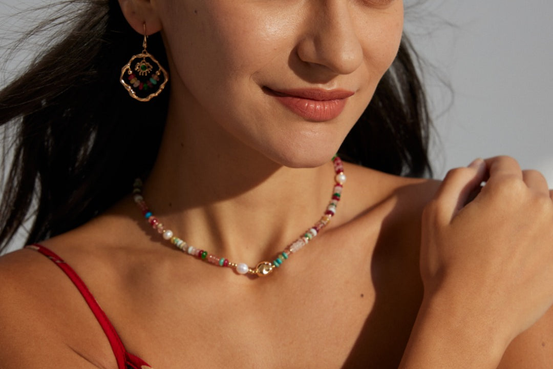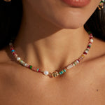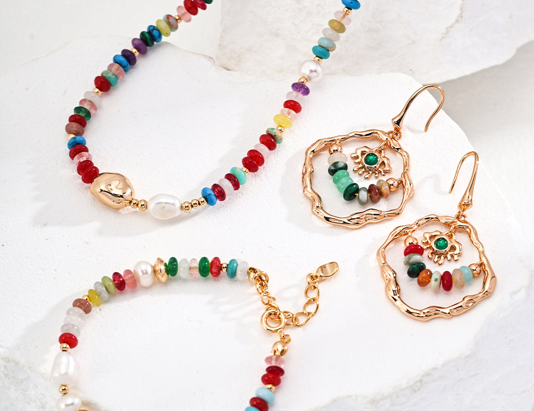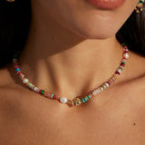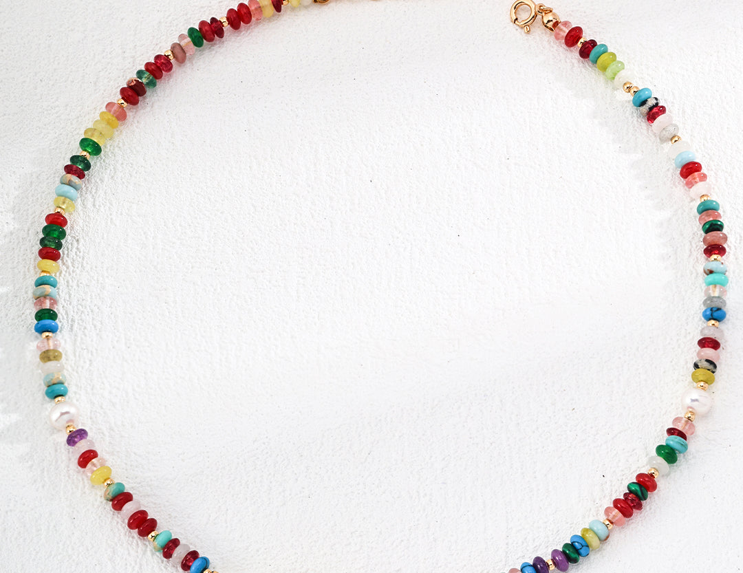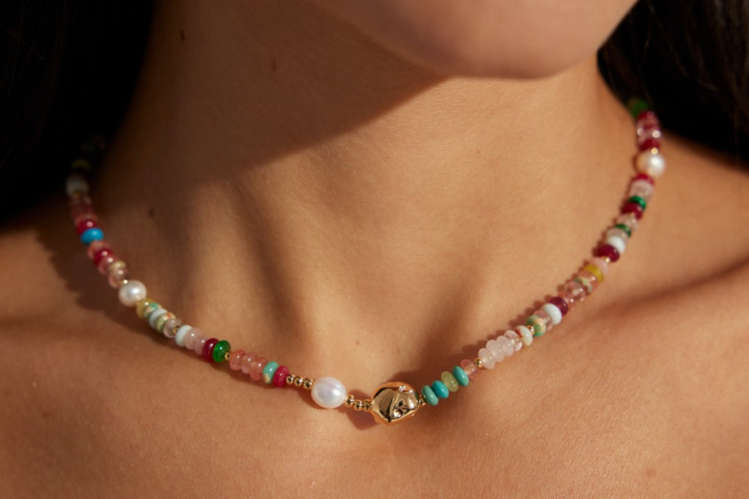 This GentleWaveCo necklace features a beautiful combination of natural pearls and vibrant color stones, set in 925 silver with a vintage gold finish. The 38cm chain with a 6cm extender ensures the perfect fit.