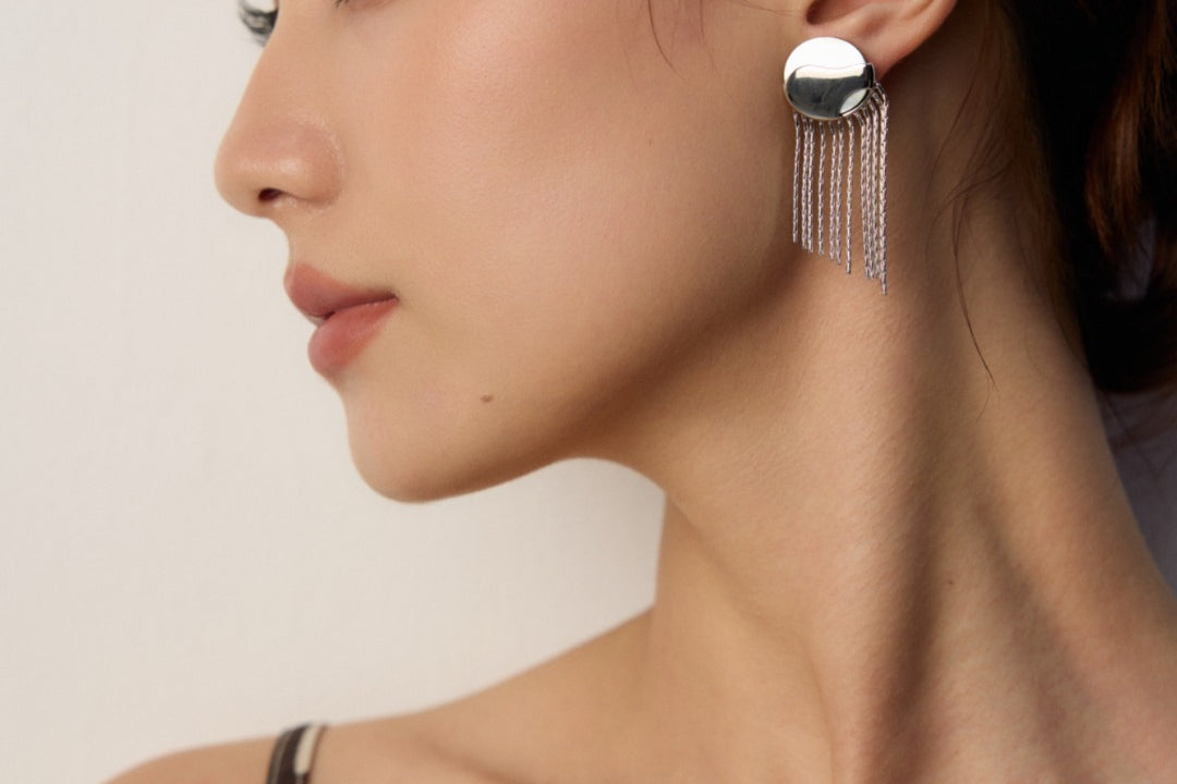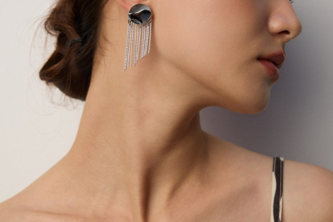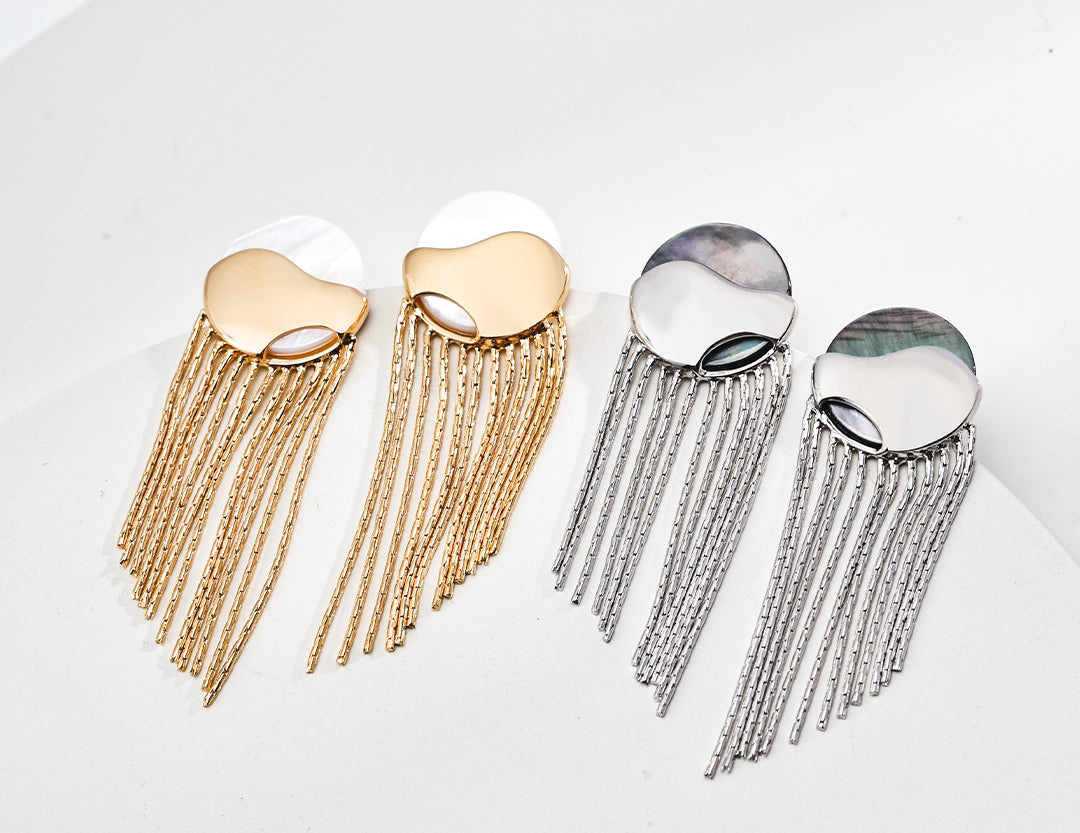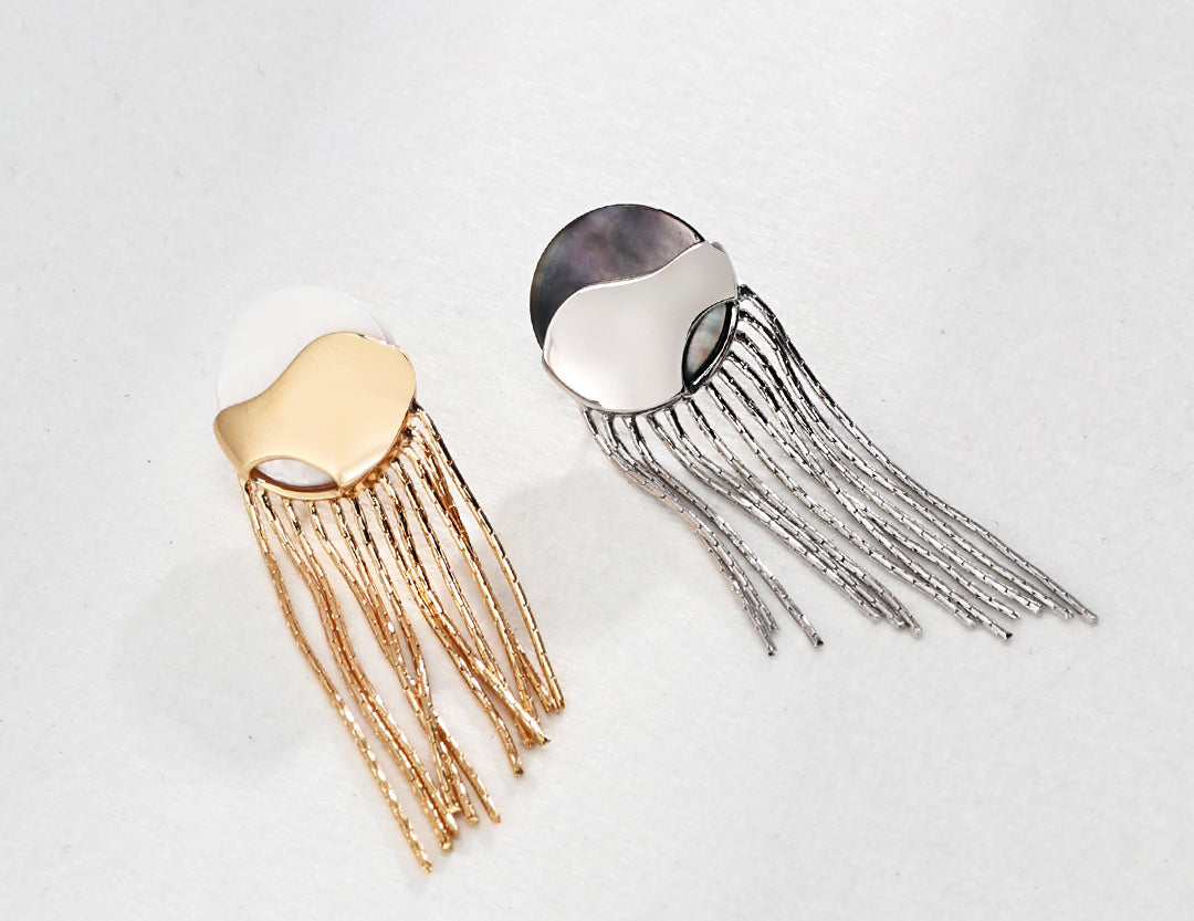 Material: 925 Sterling Silver / Mother-of-Pearl / Dark Shell Color: White Gold, Vintage Gold Dimensions: Height: 5cm | Width: 1.5cm