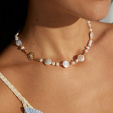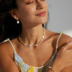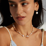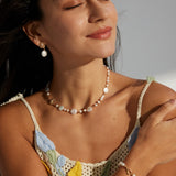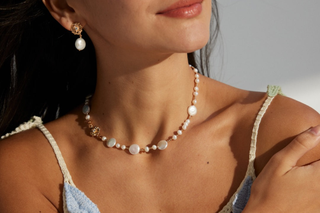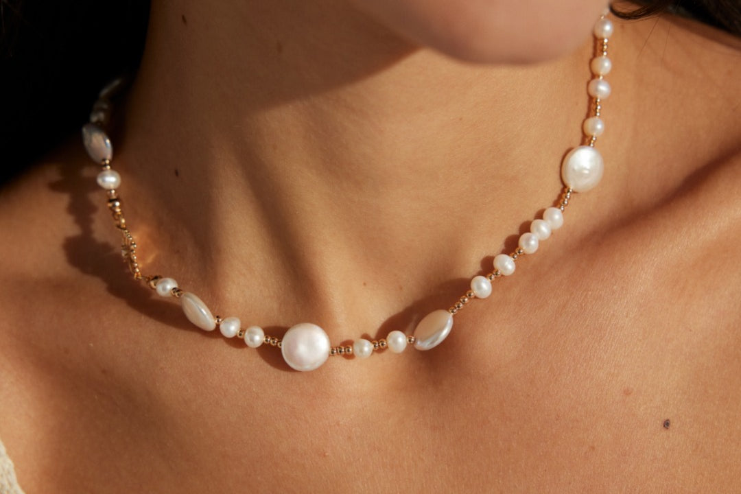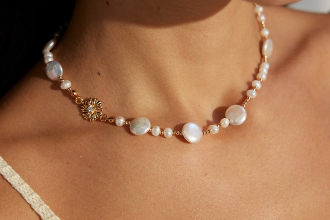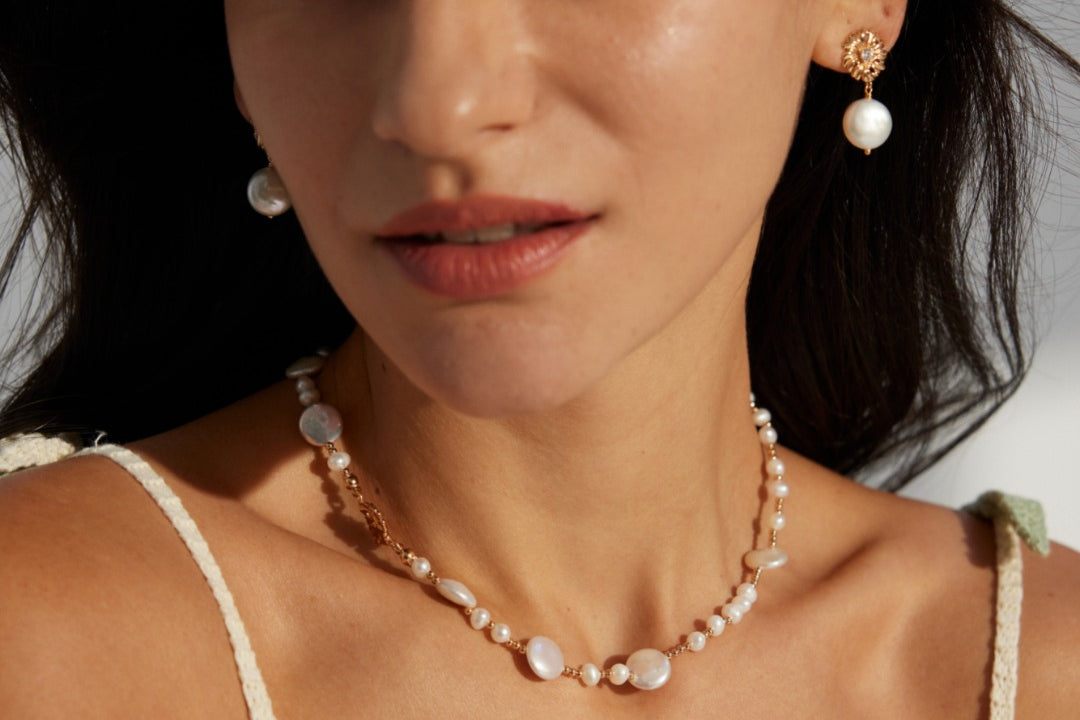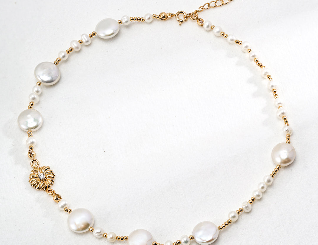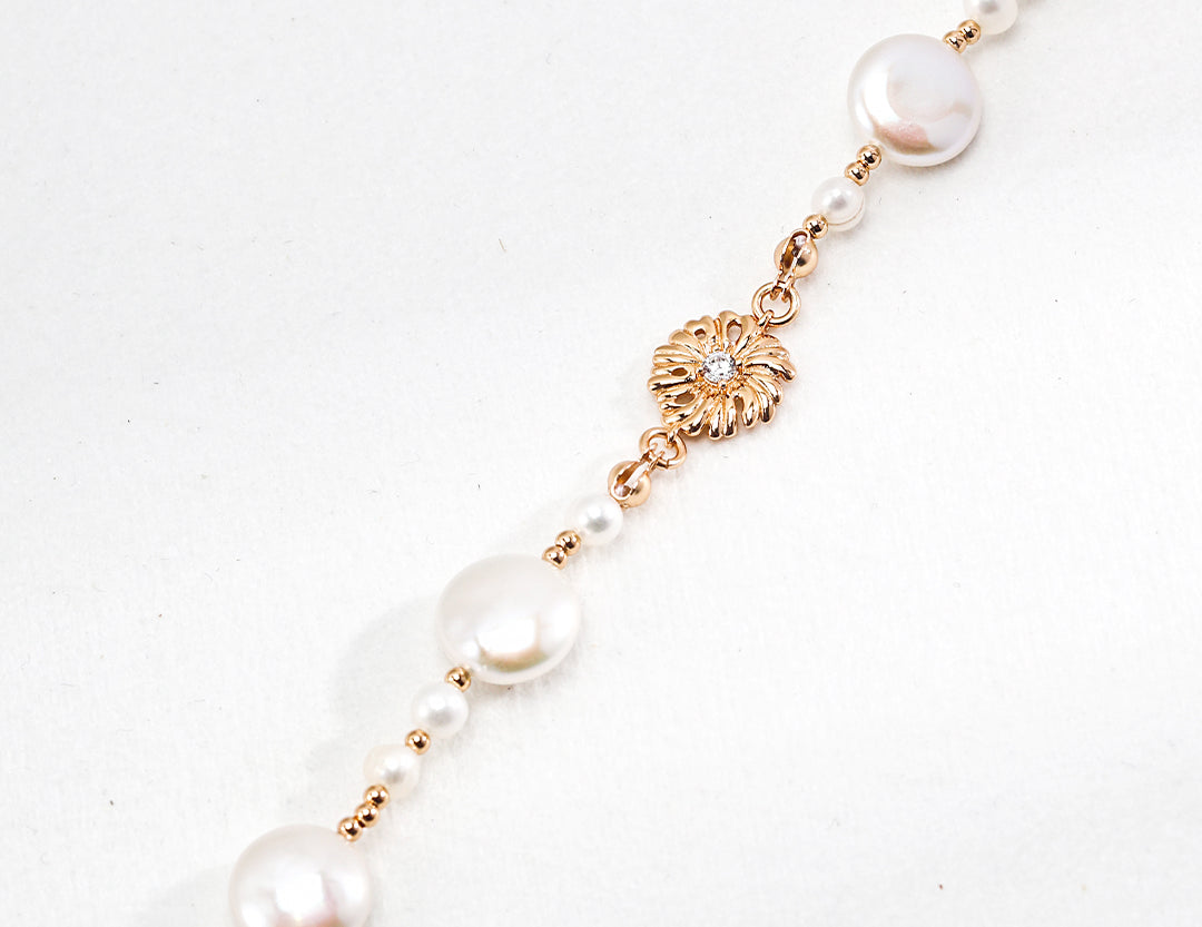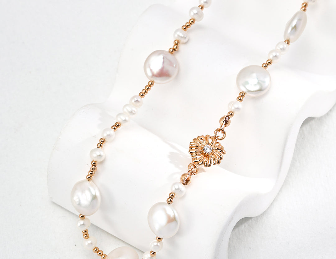 A symphony of light and texture. This exquisite necklace artfully combines the organic glow of natural pearls with the brilliant sparkle of zircon, creating a captivating piece that transitions effortlessly from daytime refinement to evening allure.