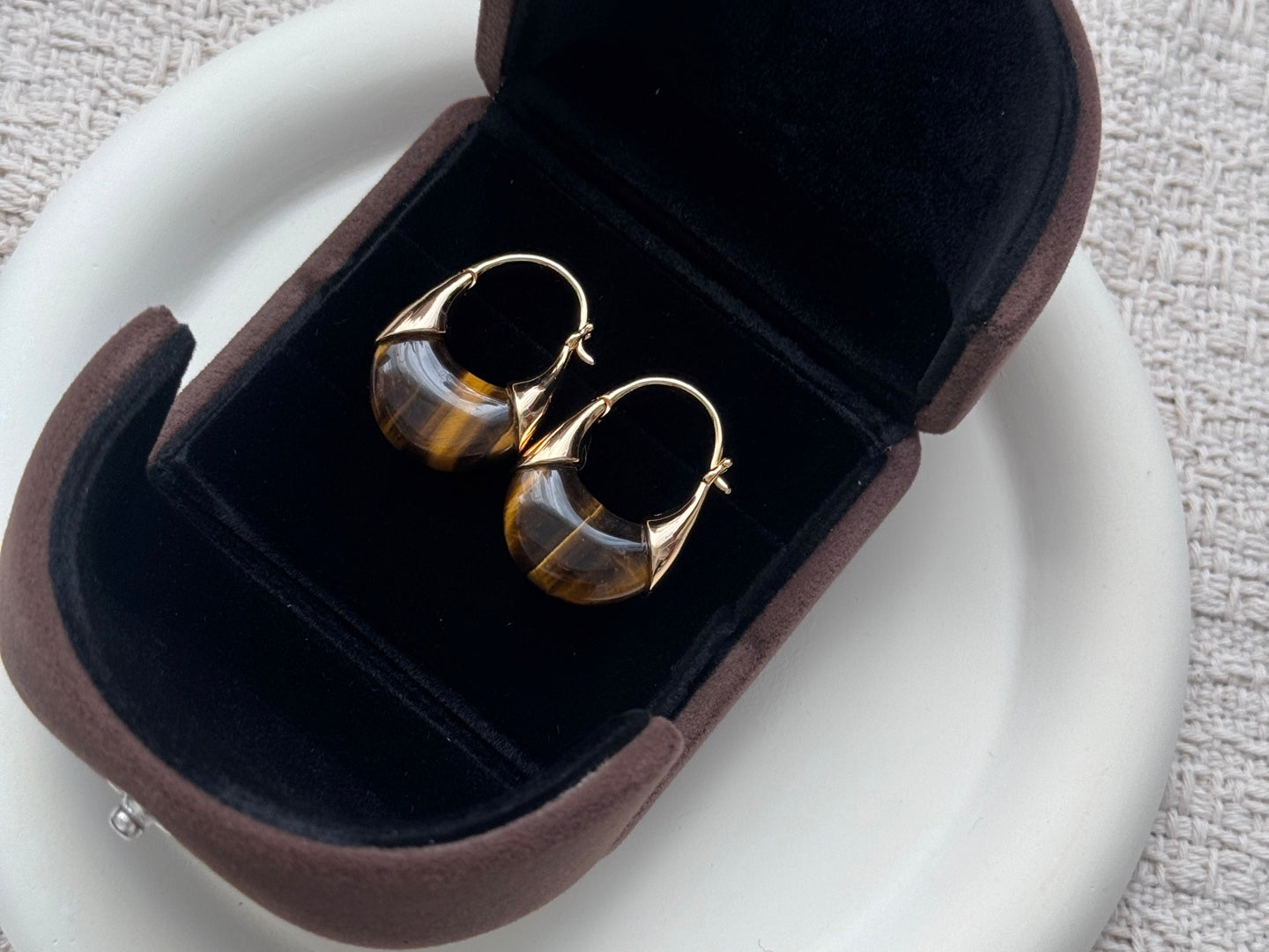 Color: Natural earthy brown tones with golden luster