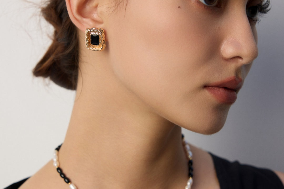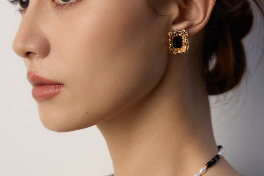 These GentleWaveCo earrings combine the boldness of black enamel with the elegance of 925 silver. Available in retro gold and white gold, they add a unique touch to your style.