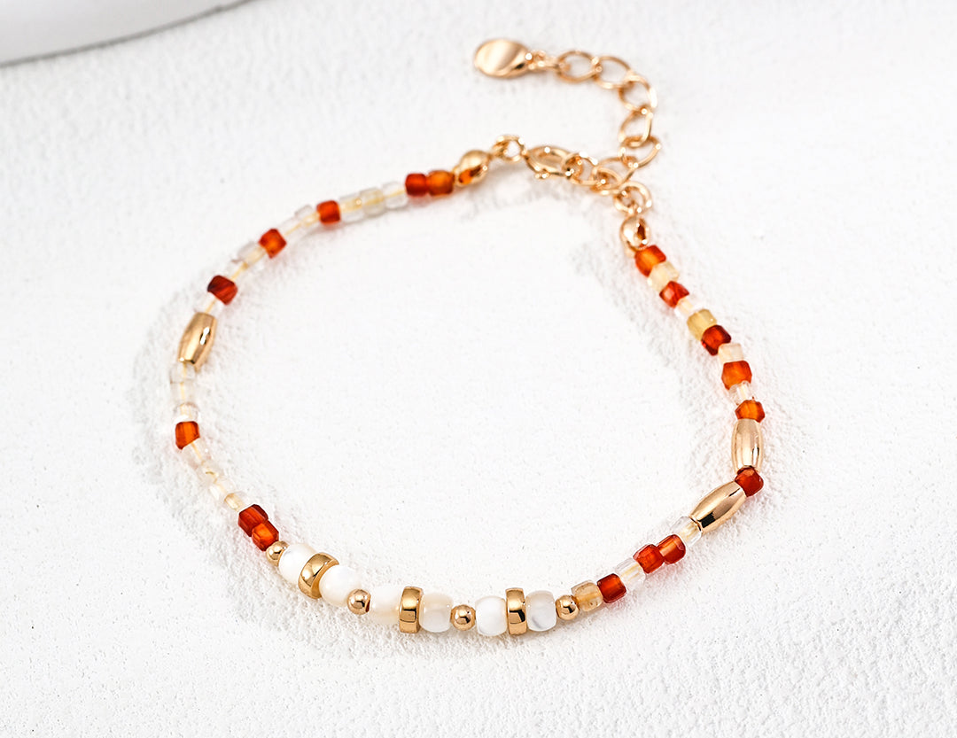 Red Agate and Mother of Pearl Bracelet Balance Charm Bracelet SL0194-2