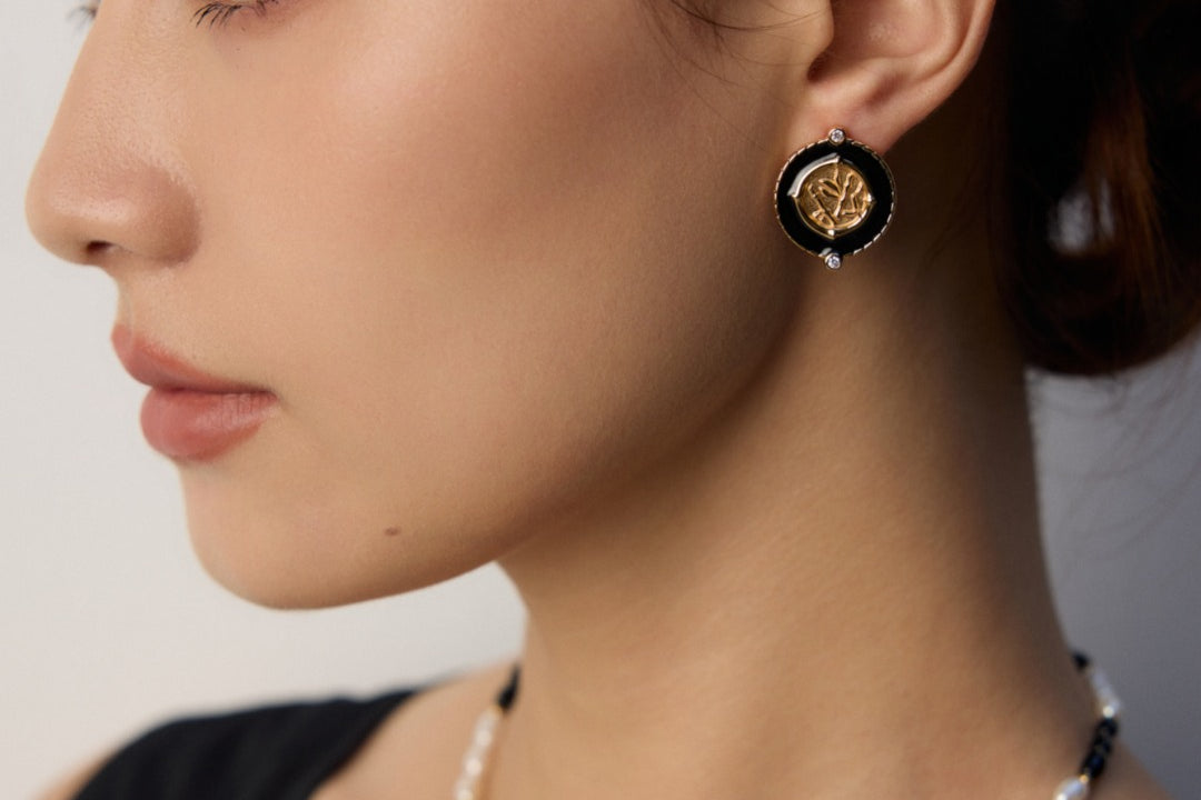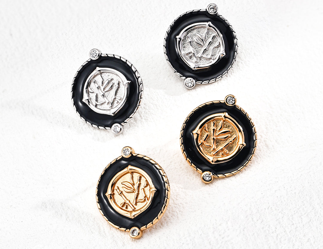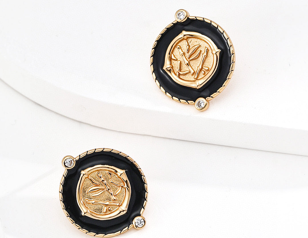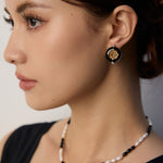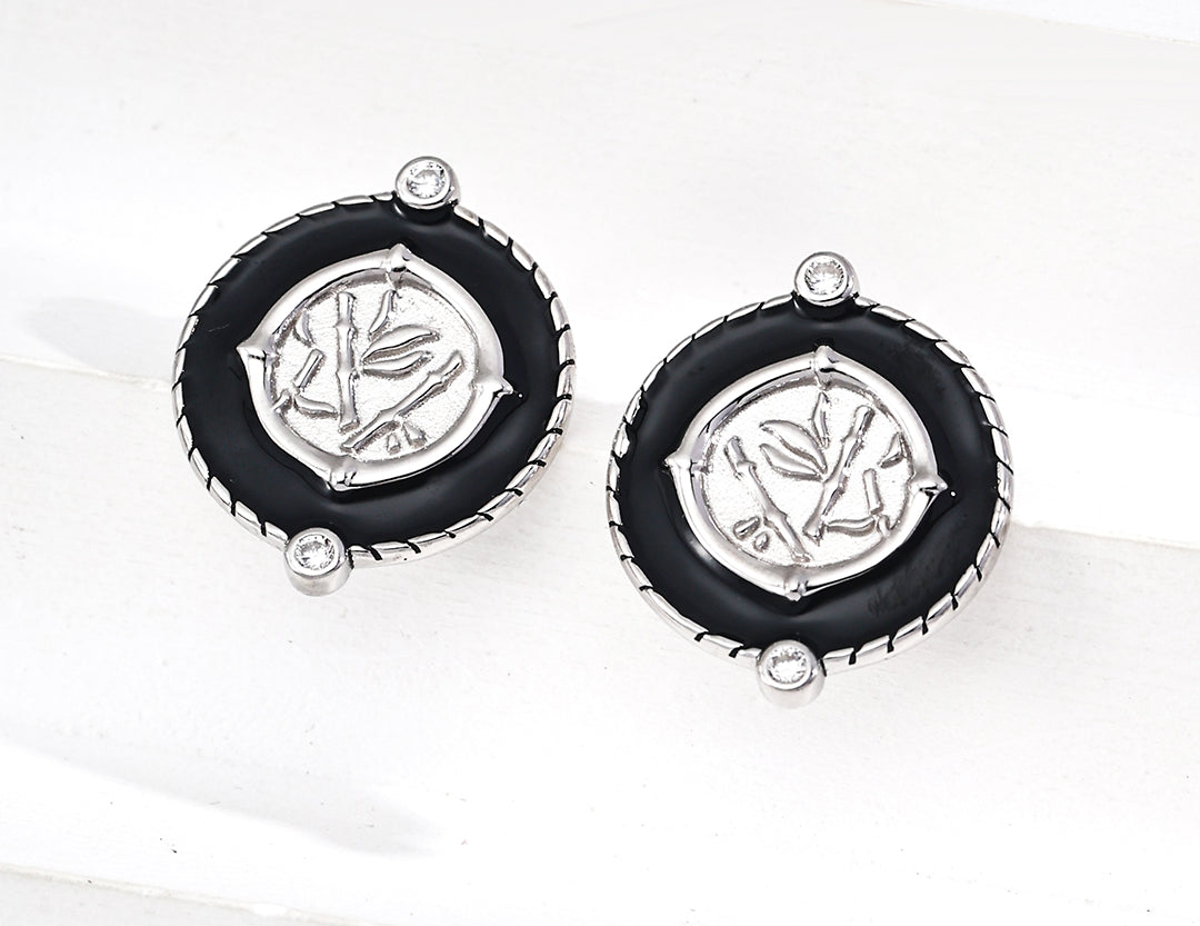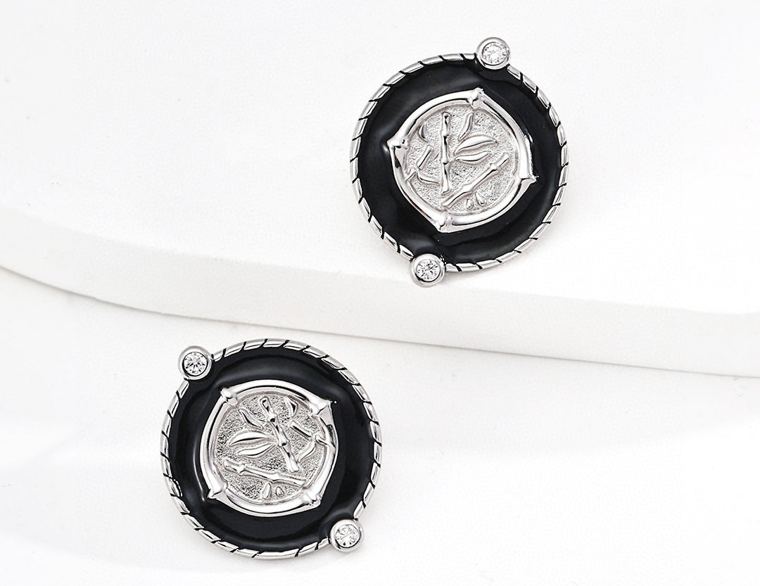 Elegant S925 sterling silver vintage-inspired earrings with black enamel finish and sparkling zircon accents — perfect for gothic, retro, or everyday chic looks.