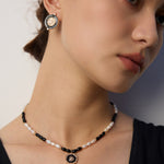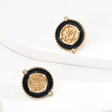 Vintage Black Enamel Zircon Earrings — Retro Gothic Hoop Drop